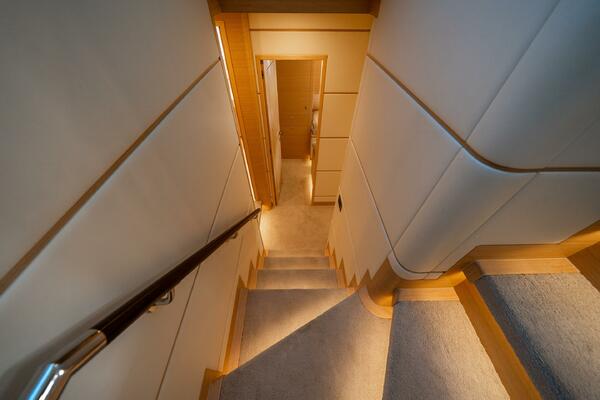 •Interior stair steps with carpet in the middle and wood in two sides, steps from main deck to lower deck and toflybridge only