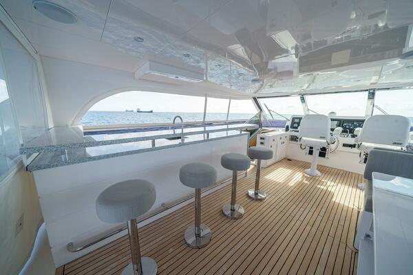 •Flybridge bar high level extended to aft end in granite and the front FRP surface of bar will be divided by 1" gap