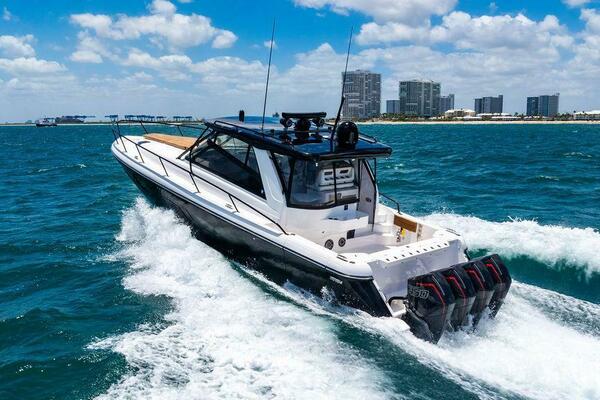 This Intrepid 477 Evolution is a very clean and well-maintained luxury sport yacht that is currently in storage and turn-key-ready for her new owner and next adventure. The seller has taken this vessel up the Eastern seaboard to the Great Lakes from South Florida, demonstrating its capability as an excellent choice for those seeking speed along with a low-maintenance outboard boat suitable for comfortable living and travel. This walkaround model features a spacious cabin with two queen-bed state rooms, a fully equipped galley, and a head with a separate shower. The dining settee seats eight and converts into an additional berth. With its signature stepped hull, it's designed for her quad Mercury racing engine configuration, offering a smooth, dry ride and excellent handling. The 477 is the culmination of 15 years of development and has set a new standard in the Outboard Cruising sector in yachting. Boat is well preserved in storage after being kept in fresh water and will be back in South Florida by May 2025. Some of the most Attractive Features and Upgrades on this 477 Evolution are the following: