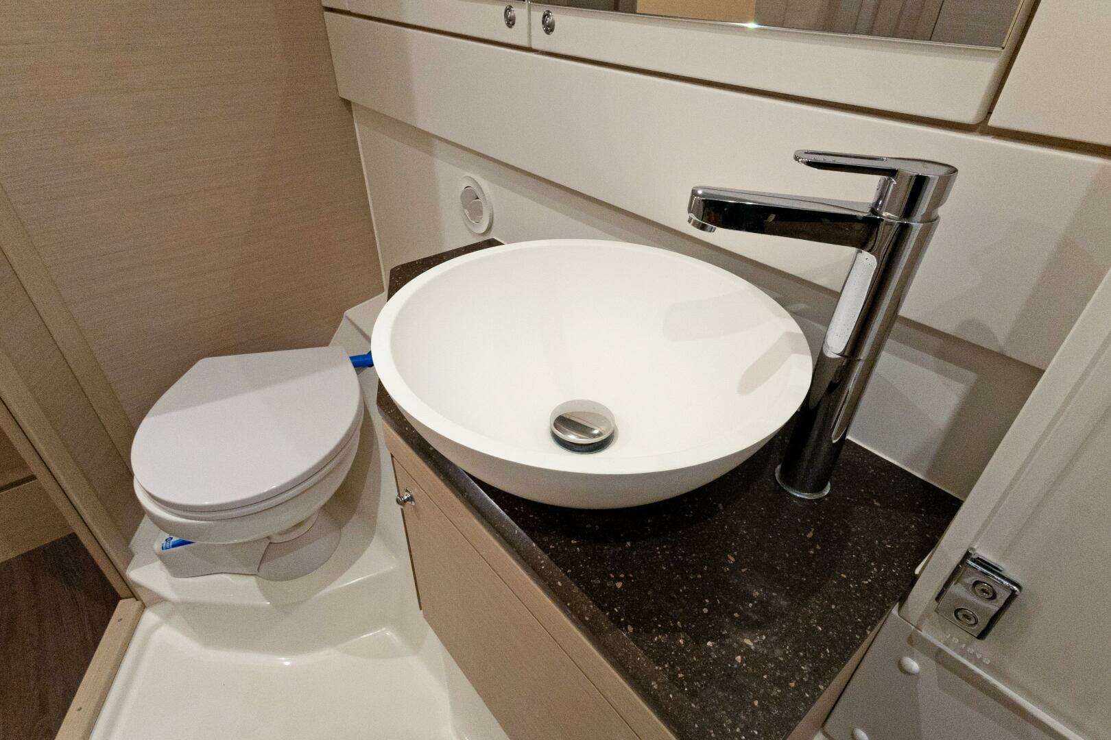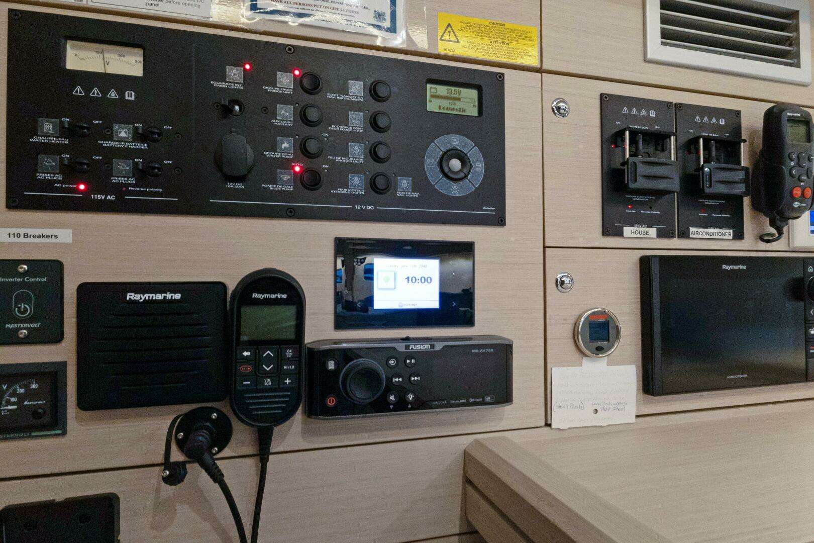 Systems-wise, she is built for true independence. A lithium house battery bank, AGM starting and generator batteries (2024), Balmar alternator, and 2000VA inverter power her electronics and appliances. A Cummins Onan 7.5 kW generator, 60 L/h watermaker, and 40,000 BTU air conditioning make her self-sufficient at anchor. The addition of Starlink (2023) ensures seamless, high-speed internet connectivity offshore, transforming work or cruising life aboard. All of this has been overseen by a professional captain, with complete service records and logs verifying her meticulous upkeep and system reliability.