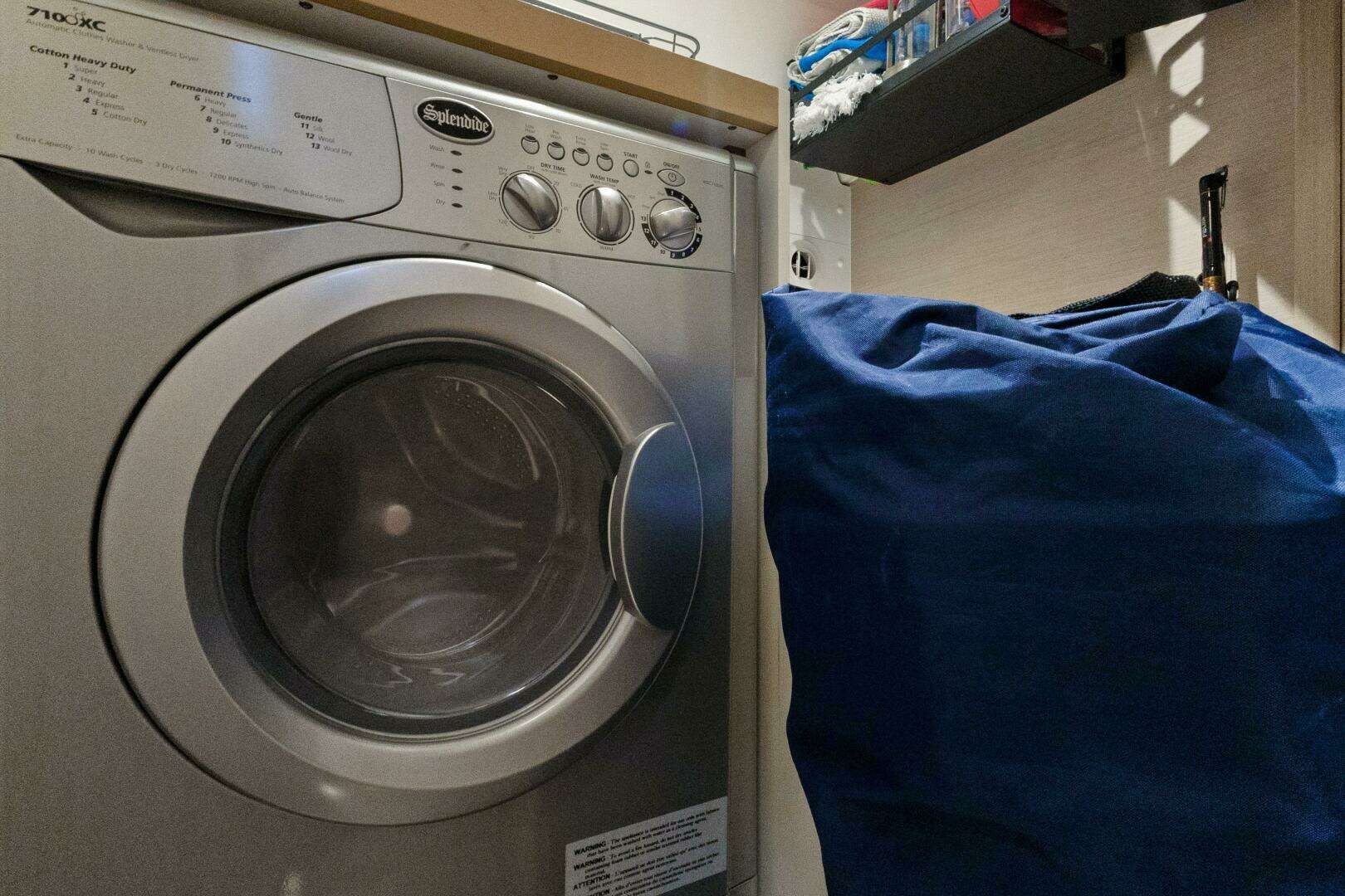 Below deck, BEATRICE’s white oak interior feels bright, modern, and welcoming. The current owner has gone further, refitting the soft goods with newly upholstered salon cushions, adding a custom memory-foam mattress with mattress battens in the owner’s cabin, and updating entertainment with a new television. The galley and utility spaces have been thoughtfully equipped with multiple refrigeration units, a freezer drawer with icemaker, microwave with overhead hood, and a Splendide washer/dryer, making life aboard comfortable and practical whether you are living aboard for a season or entertaining for an evening.