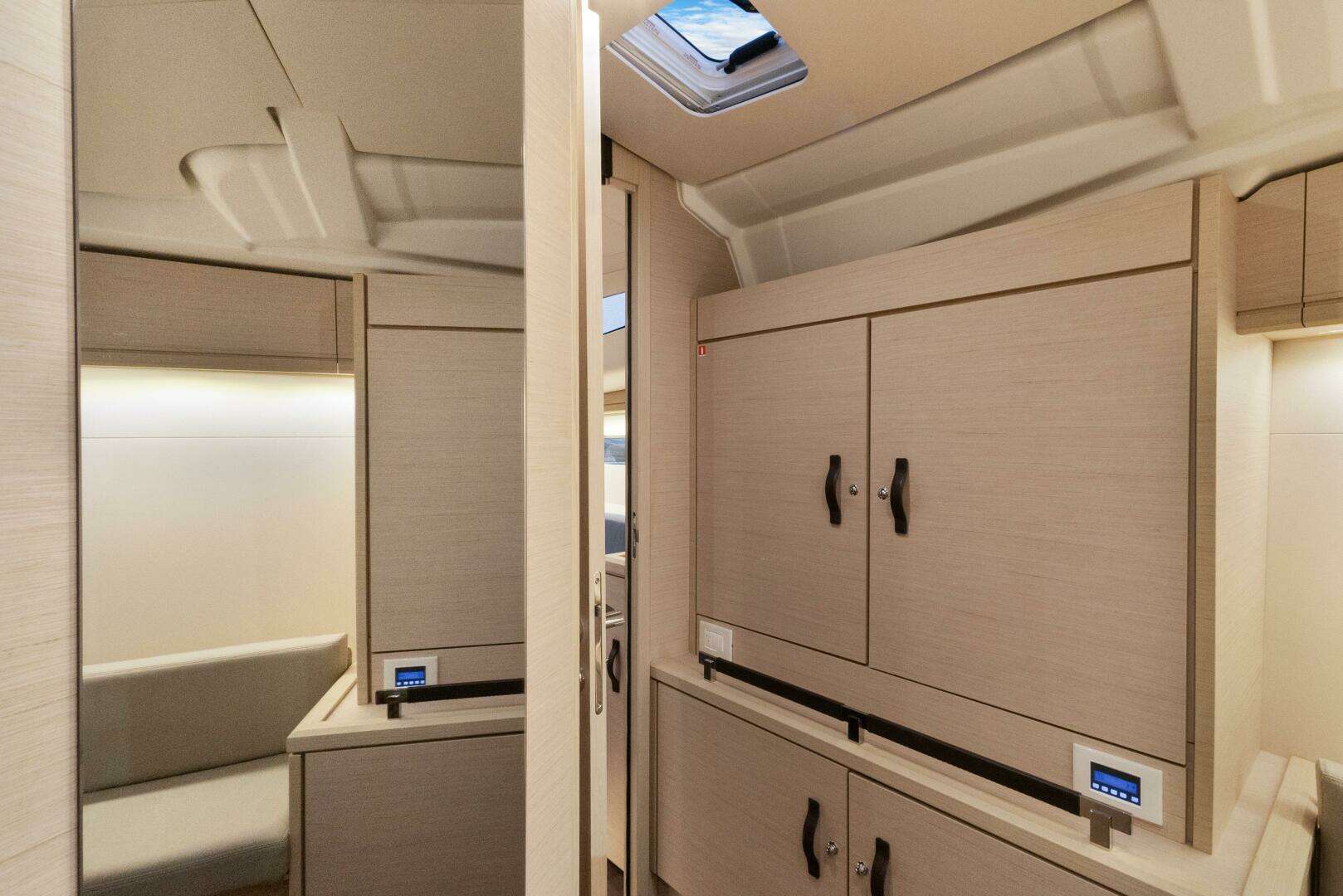 - Winches: 2 × Harken Rewind 60.2 electric (genoa), 1 × Harken Rewind 46.2 electric (mainsheet), 1 manual Harken