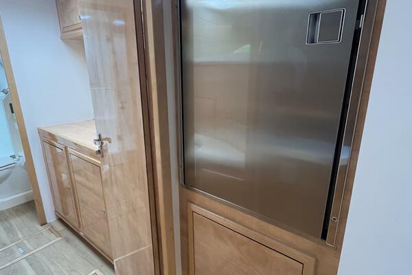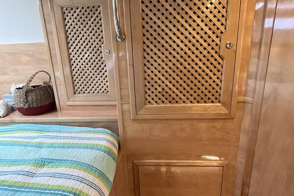 - Large storage lockers with latticed doors, outer and inner hull, foot of the bunk