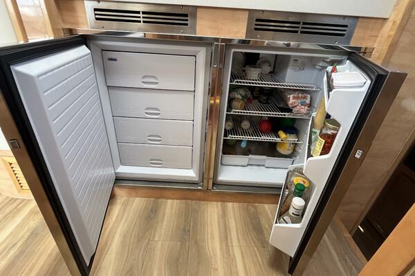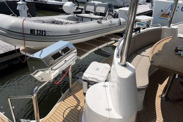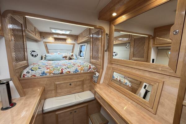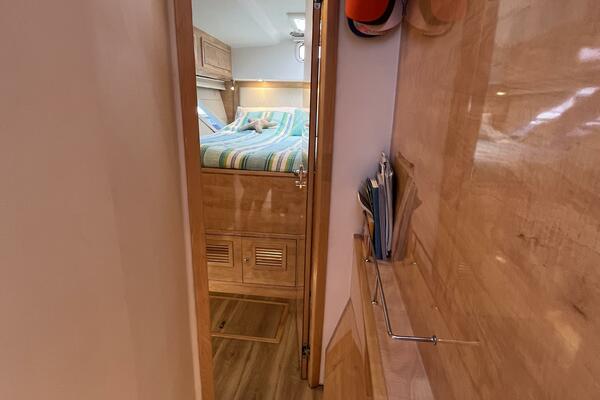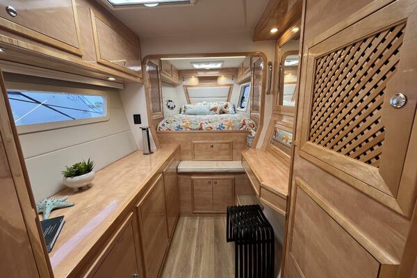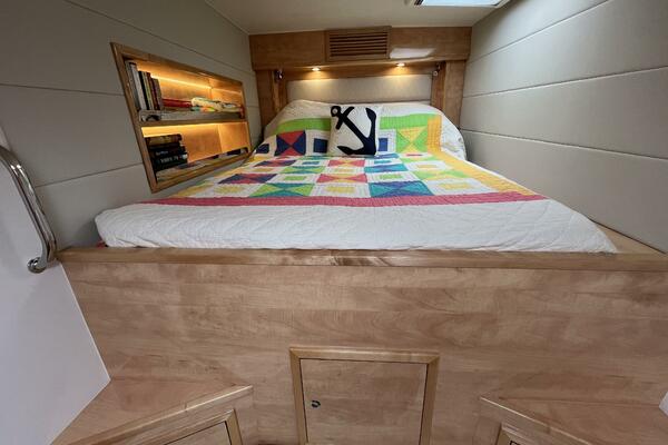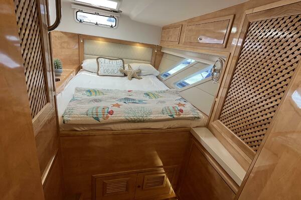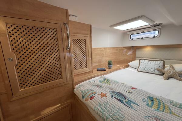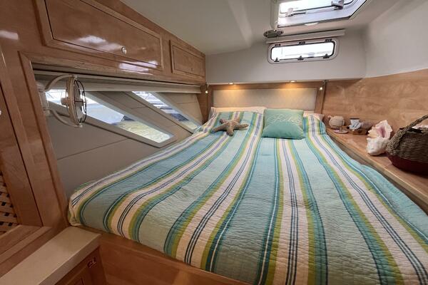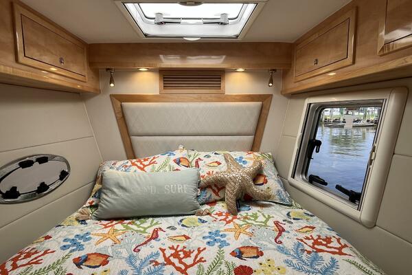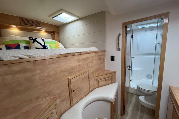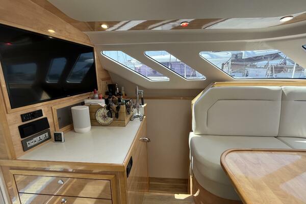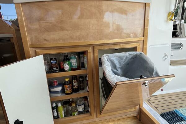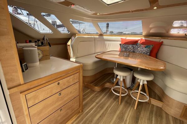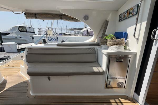 - Aft settee with storage beneath & fiberglass molded back w/ storage beneath