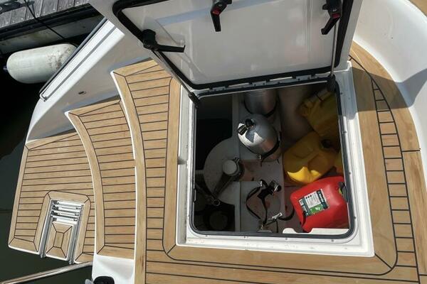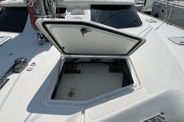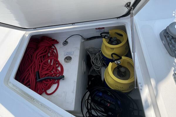 - Foredeck storage lockers w/ diesel tank (port) & freshwater tank/propane tanks (starboard)