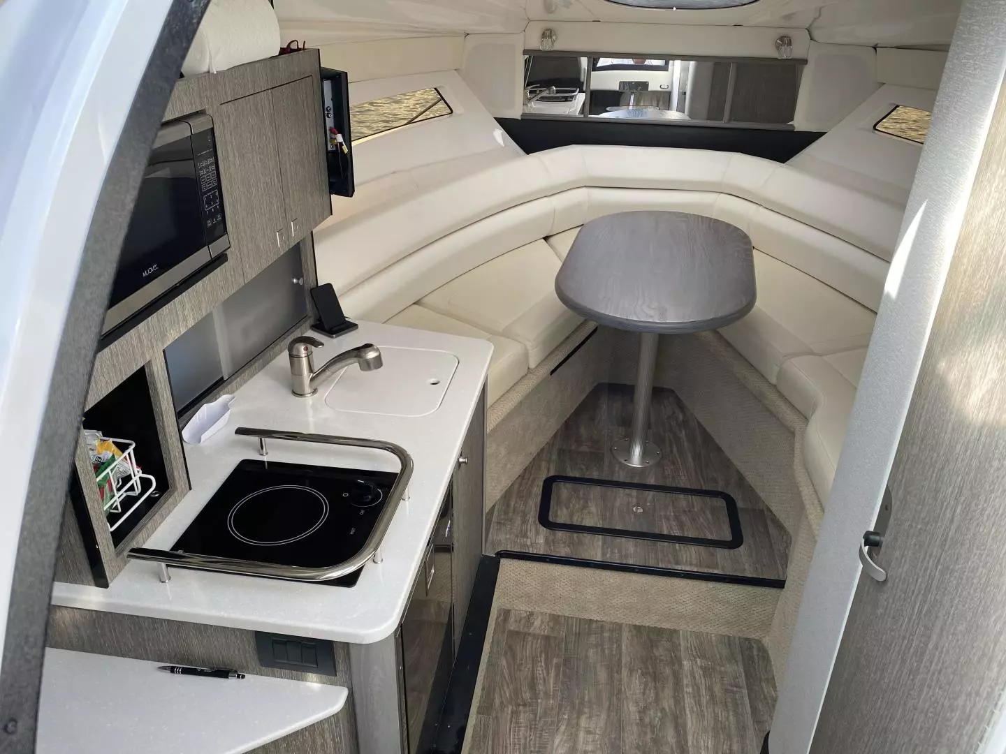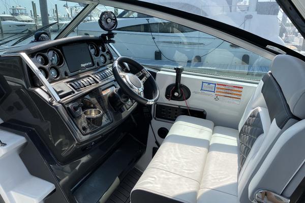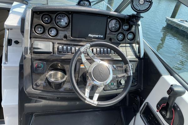 WILDEST DREAM is a perfect couple's or family cruiser with upgrades, very low hours (17.5!) and still has that "new boat" smell! With sleek lines, power to spare, and beautiful appointments she is comfortable for captain and crew. This sport yacht offers upgrades including a MERCRUISER 8.2 MAG V8 engine with Bravo 3X outdrive, VETUS bow thruster, electric windlass, A/C and electronics package(radar, GPS, chart plotter, and more).