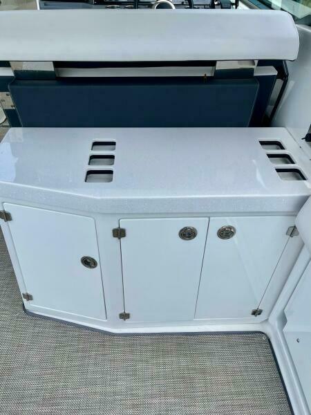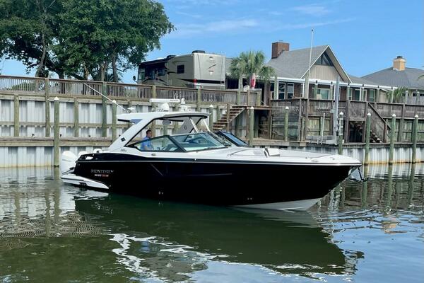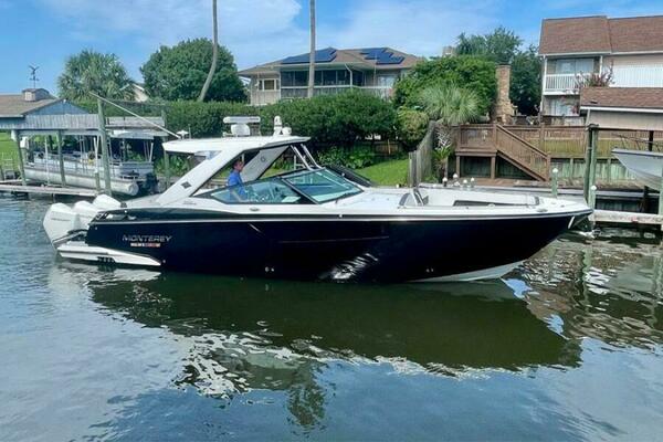 2021 Monterey 385 SE, "MIA VICTORIA", is in spectacular condition with low hours and shows like new. Designed for both day cruising and overnight trips, this yacht combines the spaciousness of a bowrider with a comfortable, well-appointed cabin.