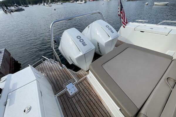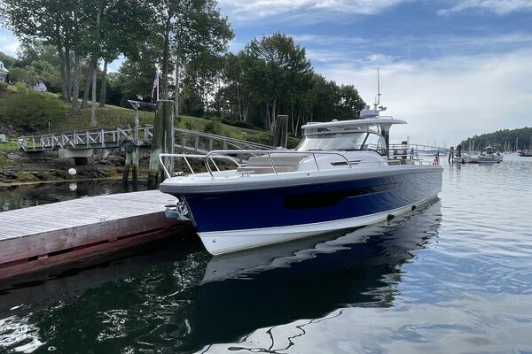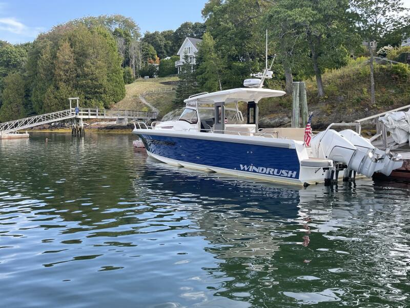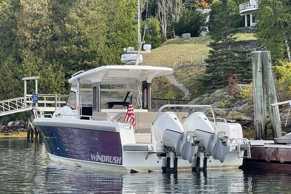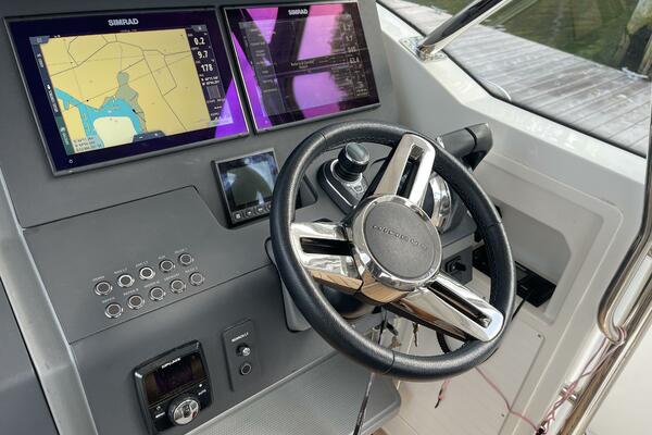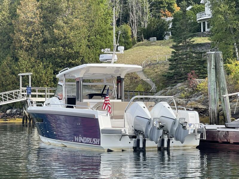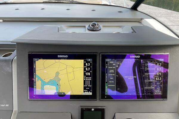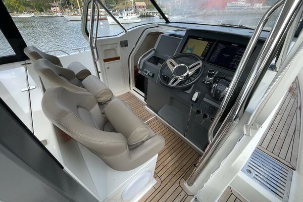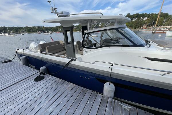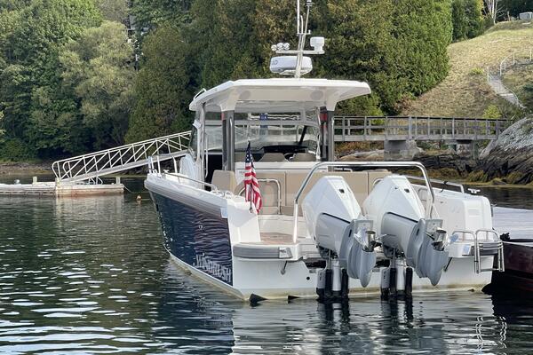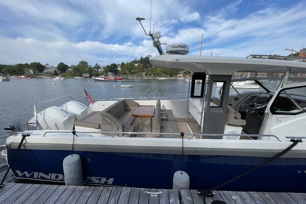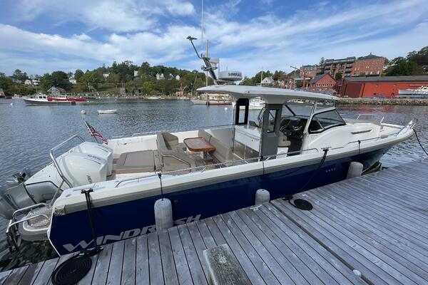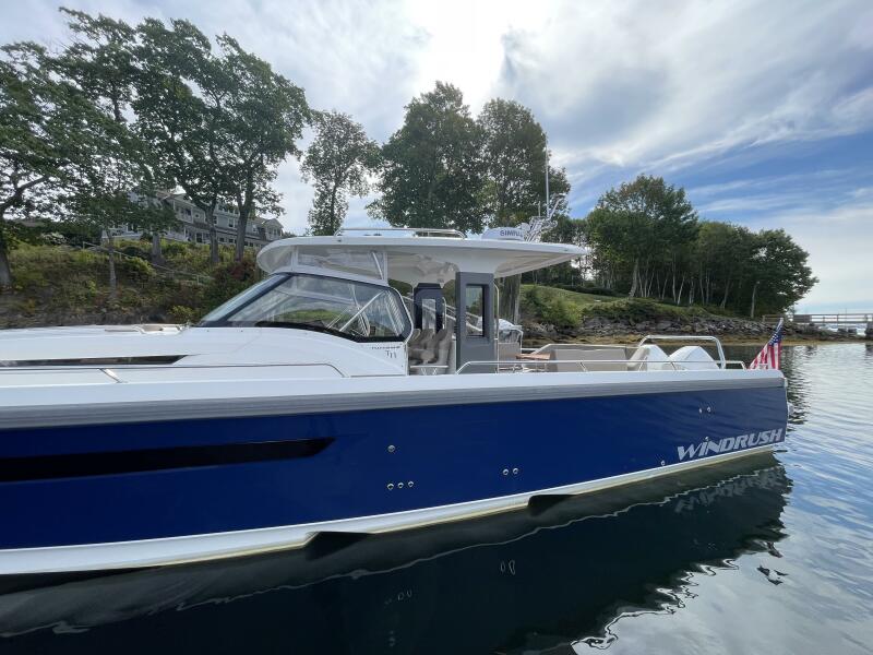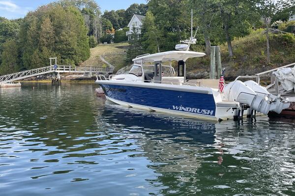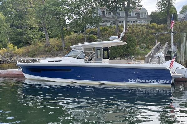 Introducing the Nimbus T11, a stunning 40-foot center console boat from 2021, known as WINDRUSH. This used vessel boasts a sleek fiberglass hull, ensuring durability and performance on the water. Powered by twin Mercury 300 XXL CW outboard engines, equipped with joystick control, it delivers an exhilarating cruising speed of 30 knots and a maximum hull speed of 40 knots, perfect for thrilling adventures. The T11 is designed for comfort and convenience, featuring an electric windlass for effortless anchoring. With a well-appointed head, it provides essential amenities for day trips or longer excursions. This boat's thoughtful design and powerful performance make it an ideal choice for both leisure and sport, promising unforgettable experiences on the water. Whether you're fishing, cruising, or entertaining, the Nimbus T11 is ready to elevate your boating lifestyle.