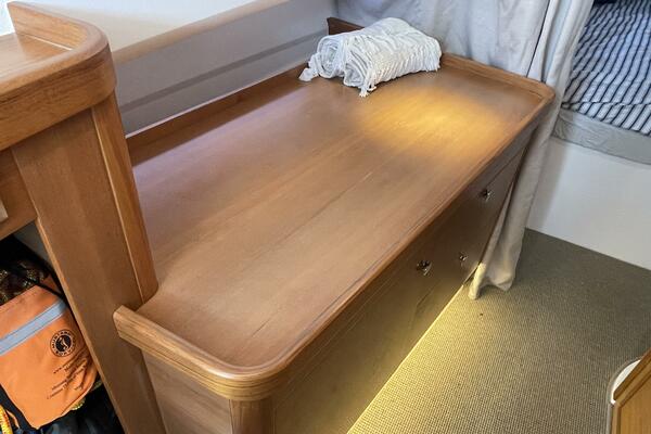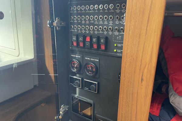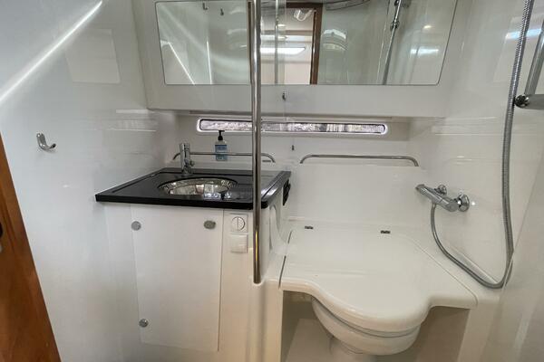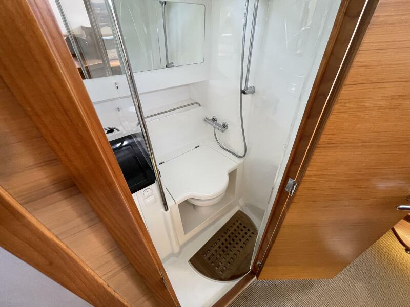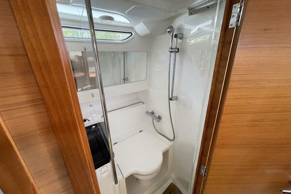 Below deck, you will find two separate cabins with space for two couples or a family of four. Spacious bathroom with toilet, shower and sufficient headroom.
