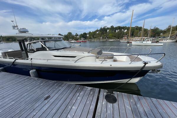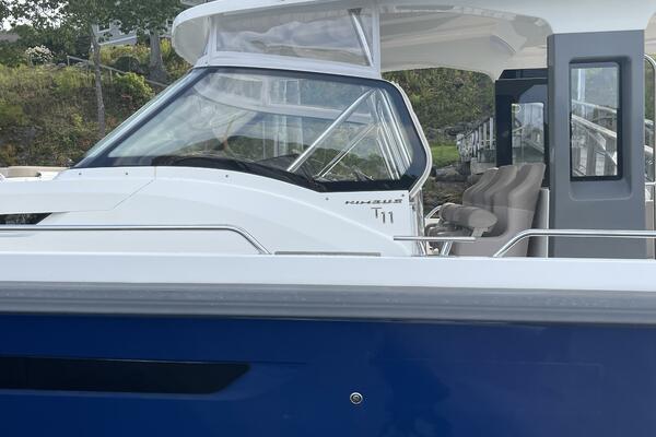 The T11 series has a new, well-balanced stepped hull with great high-speed properties in combination with a low planning threshold. The front hull is sharp in order to easily cut through the waves and it is fitted with an ample flare that protects against spray and makes for a drier ride. The boat comes equipped with two Mercury Verado V8 300 motors as standard and the speed range is between 20 and 40+ knots.