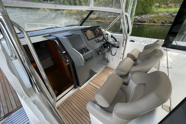 The cockpit is snuggly put together in the typical Nimbus fashion, with extra storage compartments and space for three people to sit in the direction of travel. The foredeck offers room for a divan and a sunbed. Much like the T9 series, the T11 also has a large storage hatch at the front of the cabin. Thanks to the large gunwale sides, the foredeck can also be used as a seating area and socializing space.