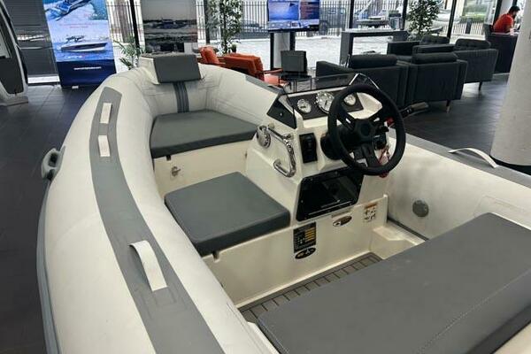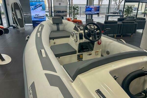 Its integrated electrical system includes a switch panel, LED navigation lights, an all-around socket type light, and an automatic bilge pump. Its integrated fuel system includes a fuel tank, a fuel gauge and a fuel/water separator. All upholstery is fabricated in marine grade material and includes a helm bench, a port-side seat, and a bow seat.