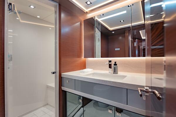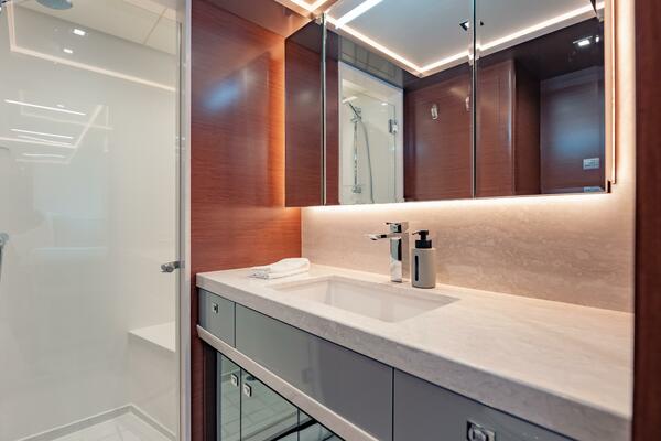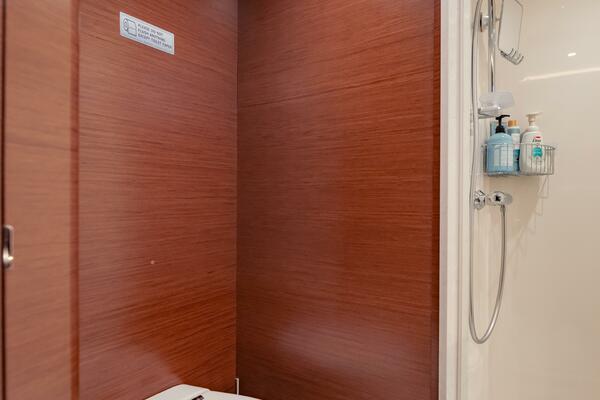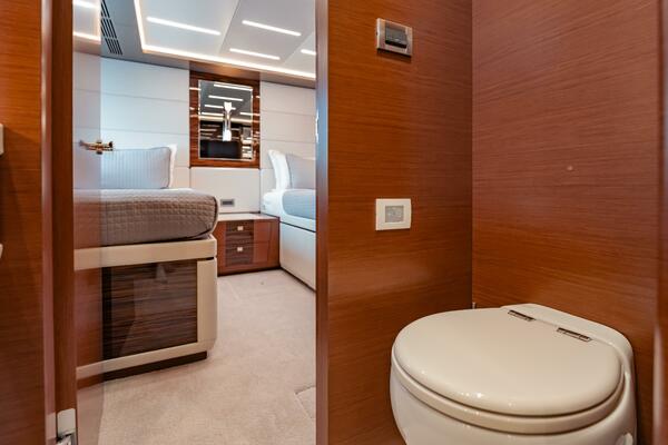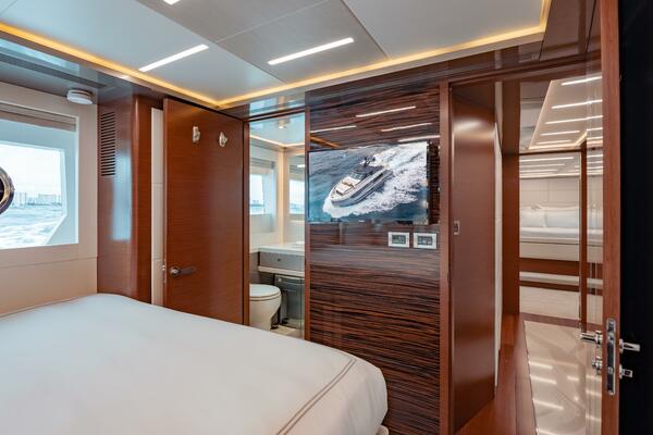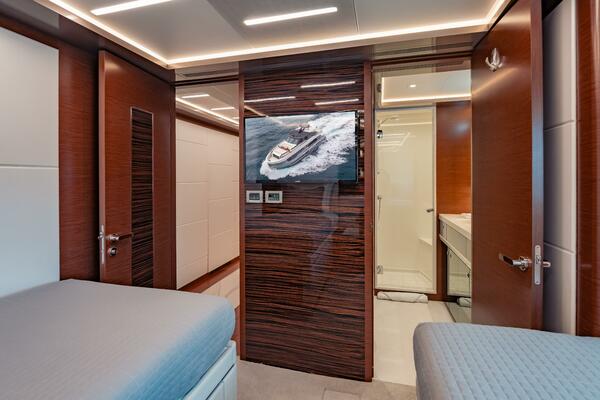 • Port and starboard guest stateroom side-by side berths can slide together and convert to single king berth.