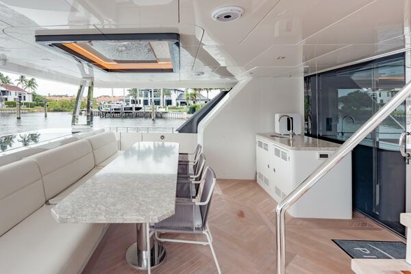 • Wet bar with refrigerator, ice maker on bridge & Aft Deck.
