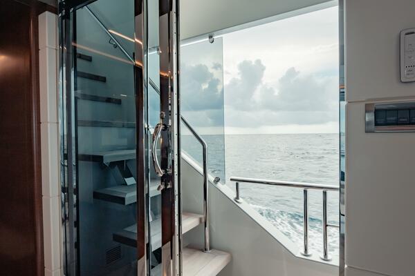 • In-glass portlight for master stateroom (2x) and guest stateroom (2x).