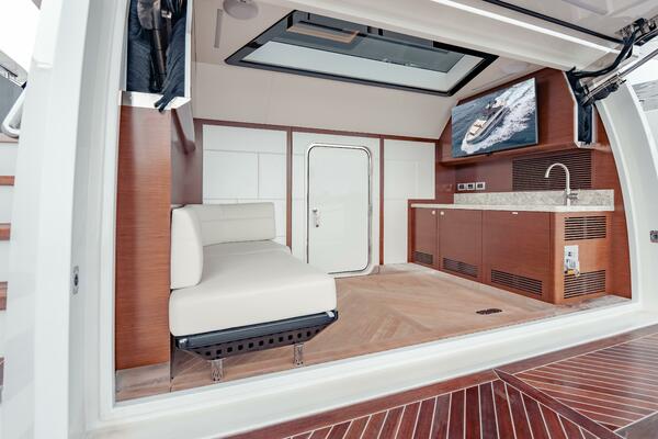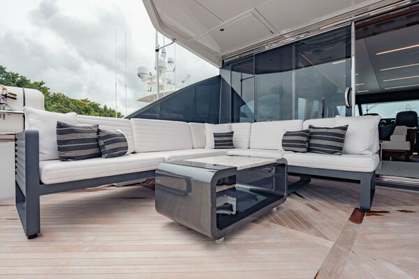 • 4-person Jacuzzi on bridge deck with sun-pads on port and starboard side.