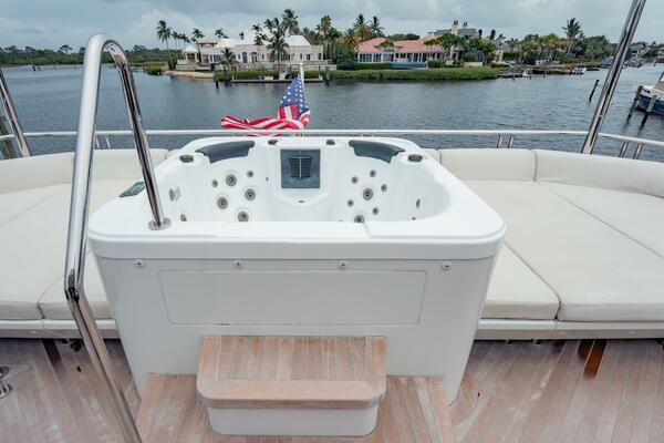 4-person jacuzzi on bridge deck with sun pads on port and starboard side