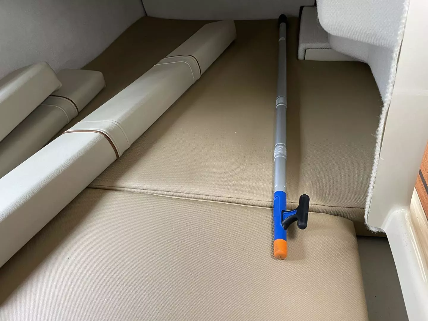Safety kit: fenders, lines, flares, fire extinguisher, first aid kit, life jackets, boat hook