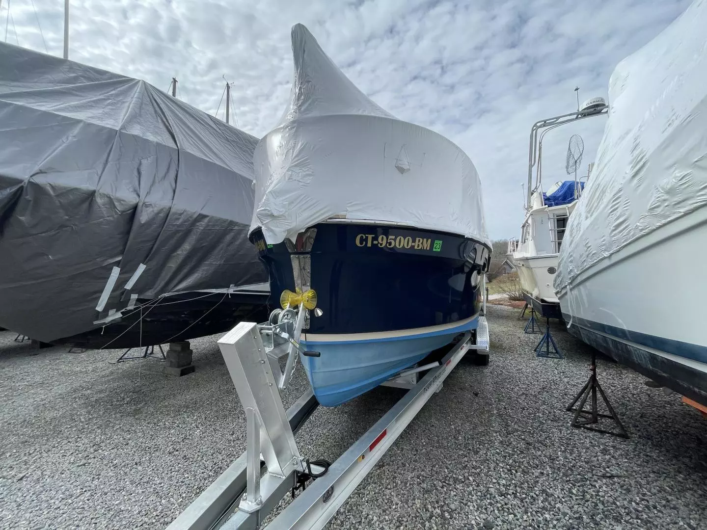Kept the in CT River, "COSTA NOVA" is an immaculate boat with all the bells and whistles! It is practically brand new. Powered by a single Yamaha 250 Outboard with approx. 40 hours. This easily trailerable R-25 Tug is a fantastic boat for cruising, fishing and all-day fun on the water. The private head, extended swim platform multiple sleeping areas and full galley gives you everything you need to ger away from the dock and spend some serious quality time on the water with friends and family.