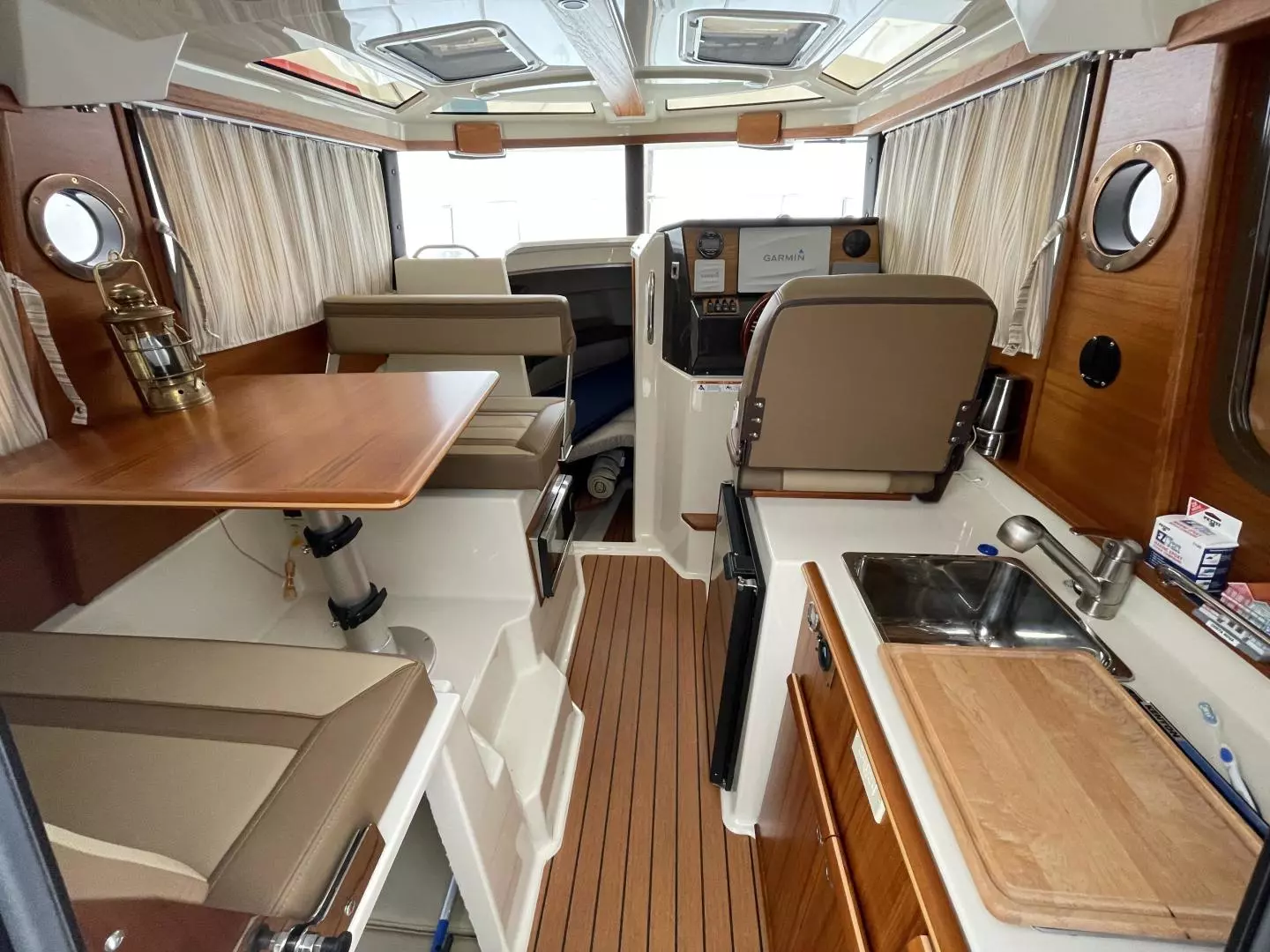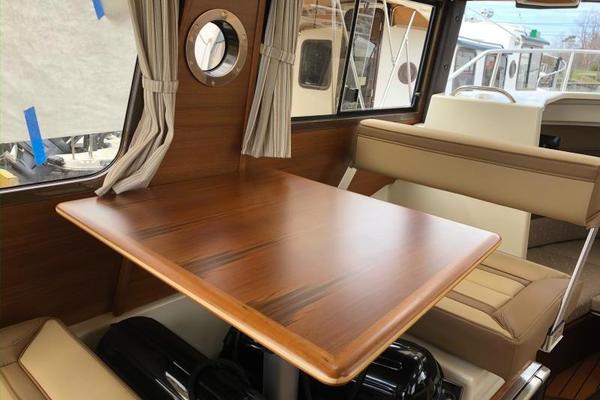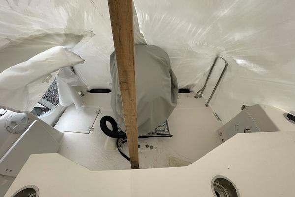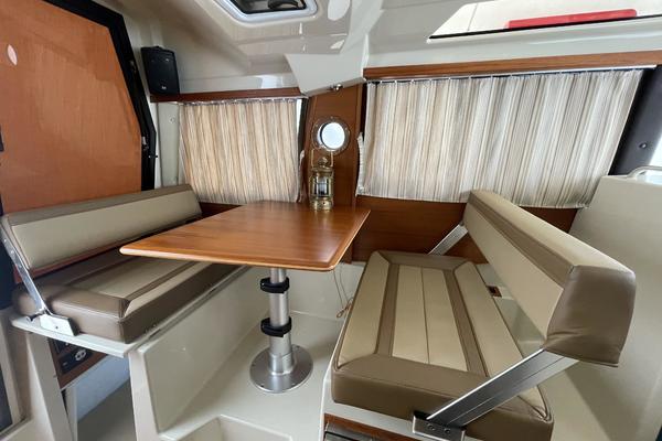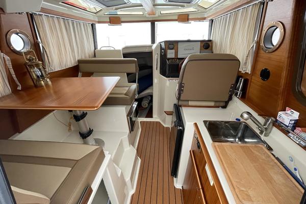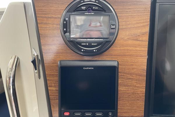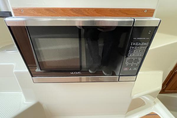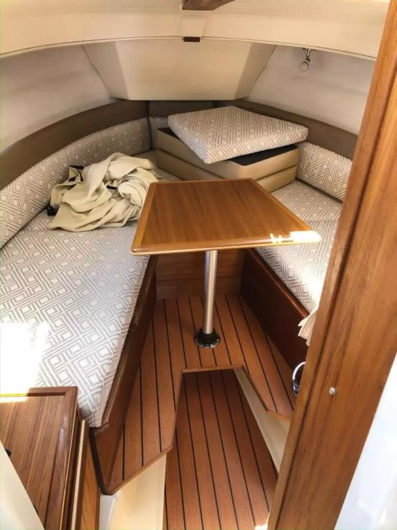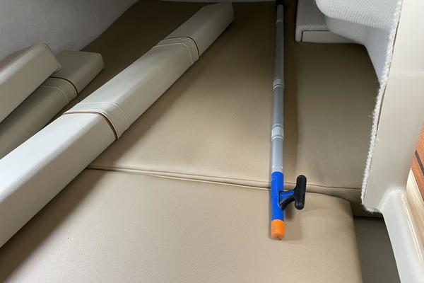 The main salon on the R-25 is light and bright, making it a perfect spot to relax or entertain. The dinette seats four or converts to a bed for two. The forward stateroom is private and comfortable featuring a large bed, opening hatches for airflow, reading lights, and a TV/DVD combo. The R-25 features a fully enclosed head equipped with an electric marine toilet, sink and shower. There's even a spacious quarter berth with a removable mattress that can be used to accommodate guests/kids or for expanded storage. An electric/alcohol stove top, refrigerator/freezer combo, microwave, and sink with hot and cold water, make food prep fun and easy.