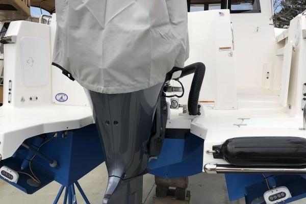 Right away you’ll notice one of the most innovative features of the R-25, our Clear-Path swim platform. The extended swim platform wraps around the outboard to present a clear walkway free of all engine rigging, which opens a whole new world of fishing, cruising, and water-sports opportunities. This exciting new design features heavy duty handrails and allows you to safely and easily board a dinghy, net a fish, step to or from a low dock (important for pets), and med-tie without fear of damaging your outboard and having to leap to the dock.