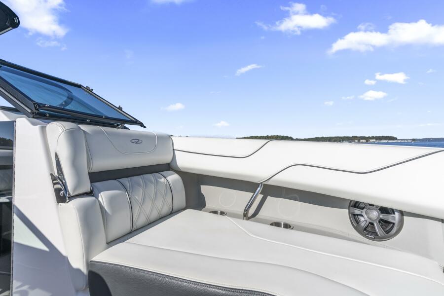What more would you want? Very agile and efficient Fastrac Hull Capable of entertaining or just chilling in your favorite cove. Kick back in the bow, spend time with your company in the cockpit – or at the transom, and enjoy innovative and thoughtful features that will bring your day to the next level. The Fastrac hulls, unlike conventional hulls incorporate a full beam step that channels air beneath the boat, dramatically reducing drag while boosting speed and fuel economy.