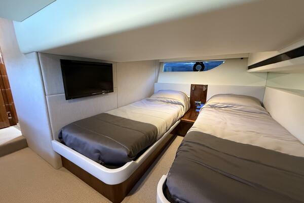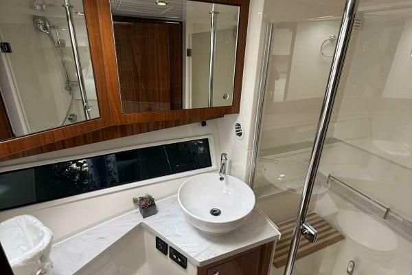 This 2021 Riviera 395 SUV is in near new condition. It stands out in the crowd with its Bahama Blue painted hull, teak cockpit, and the glistening gelcoat finish all around. All services were done in May of 2024, as well as new bottom paint. This vessel is turn key and ready for survey.