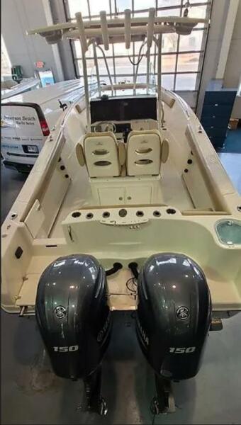 2021 Sailfish 242 w/Twin Yamaha 150HP This well-equipped 242 sailfish is one of the larger and better riding 24'+ boats on the market. It is well appointed with optional bow and stern seating, Garmin electronics, upgraded helm chairs, electric head and livewell. The twin engines allow you to venture further offshore to the fishing grounds and the extra power is appreciated on the longer cruises. This boat has been run in the great lakes and is currently located in Naples, FL.