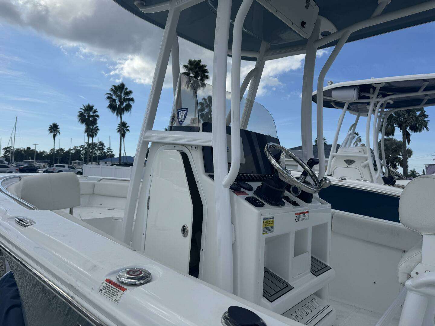 - Console: Features storage bins, a tilt helm, optional Garmin upgrades, and an integrated VHF.
