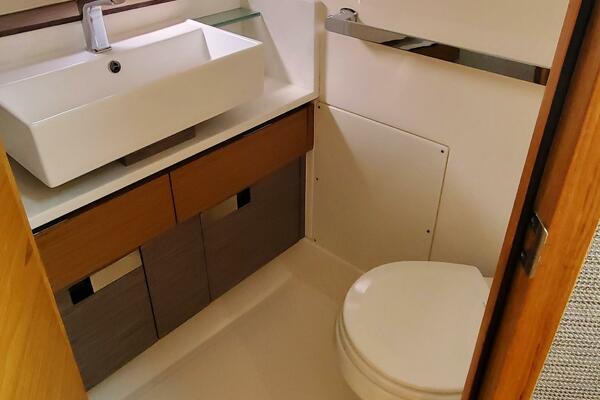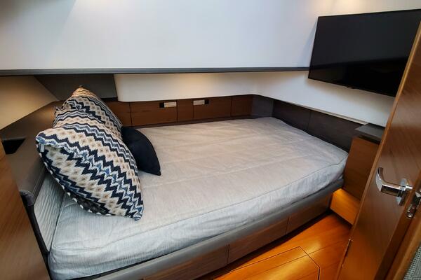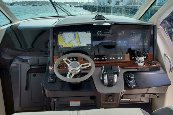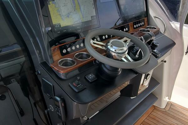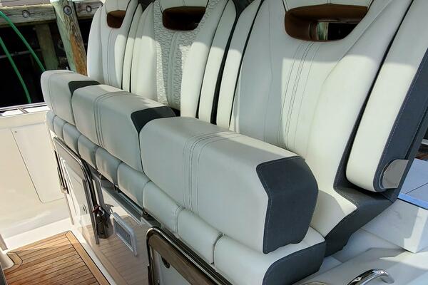 She features multiple, easily accessible social zones, perfect for friends and families to enjoy various water activities, outdoor grilling, dining, and lounging. Relax on the convertible sun pad, in the elegant cabin, or in the aft cockpit areas. The wrap-around forward bow seating provides additional space to unwind and enjoy time on the water with loved ones.