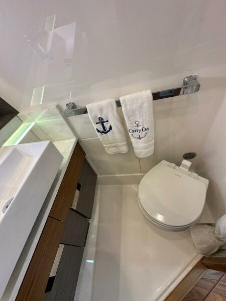 - Full Fiberglass Private Head Compartment with Non-Skid Floor