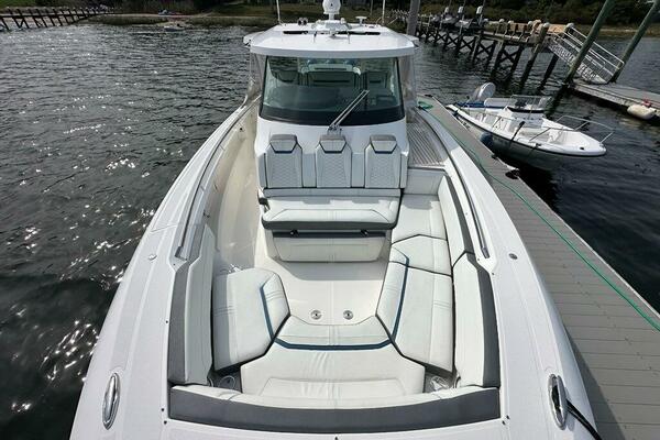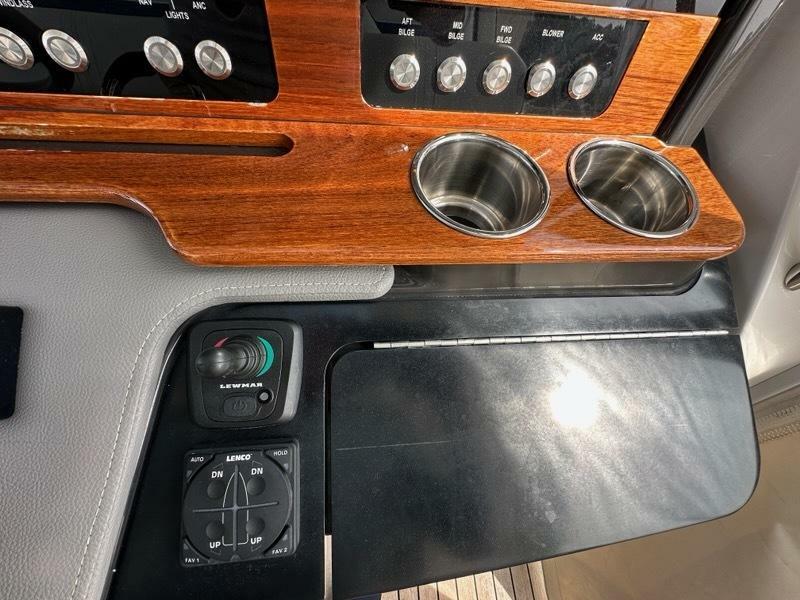 - Double Width Helm Seat on Centerline with Electrically Actuated Fore and Aft Adjustment, Flip-Up Bolster and Weather Cover