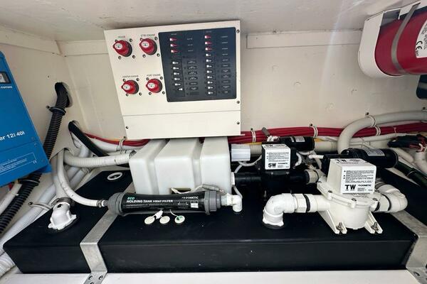 - One Holding Tank with Deck Discharge, Vent Filter and Digital Level Indicator