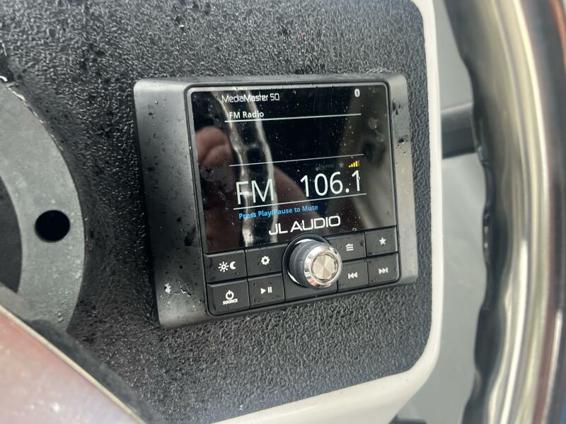 Equipped with Garmin GPS/Plotter/Sonar, JL Audio stereo system with Bluetooth and four speakers, stainless steel radar arch, stainless steel frame Bimini top, battery with switch, auto bilge pump, and a 12-gallon fuel tank. A Road King bunk trailer is included. Always dealer serviced with all maintenance up to date. Asking only $17,900!