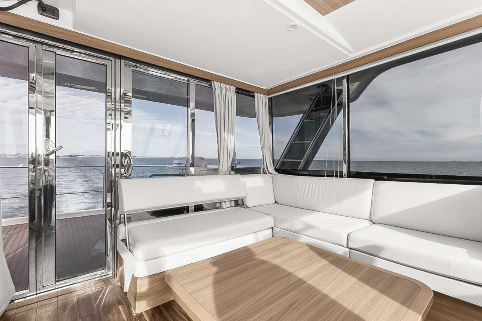 FULLY ENCLOSED FLYBRIDGE SKY LOUNGE WITH UPGRADED FURNITURE