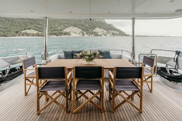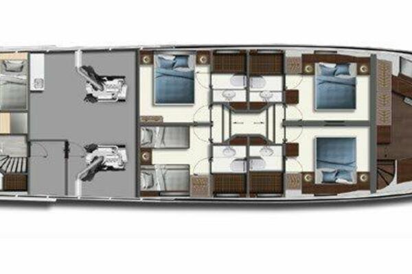• Long-Range Capability • Dual Stabilization Systems (hydraulic and gyroscopic) • Spacious outdoor decks designed for dining, lounging, and enjoying open-air views • Engineered for low vibration and noise, enhancing onboard comfort • 9 knots cruising speed