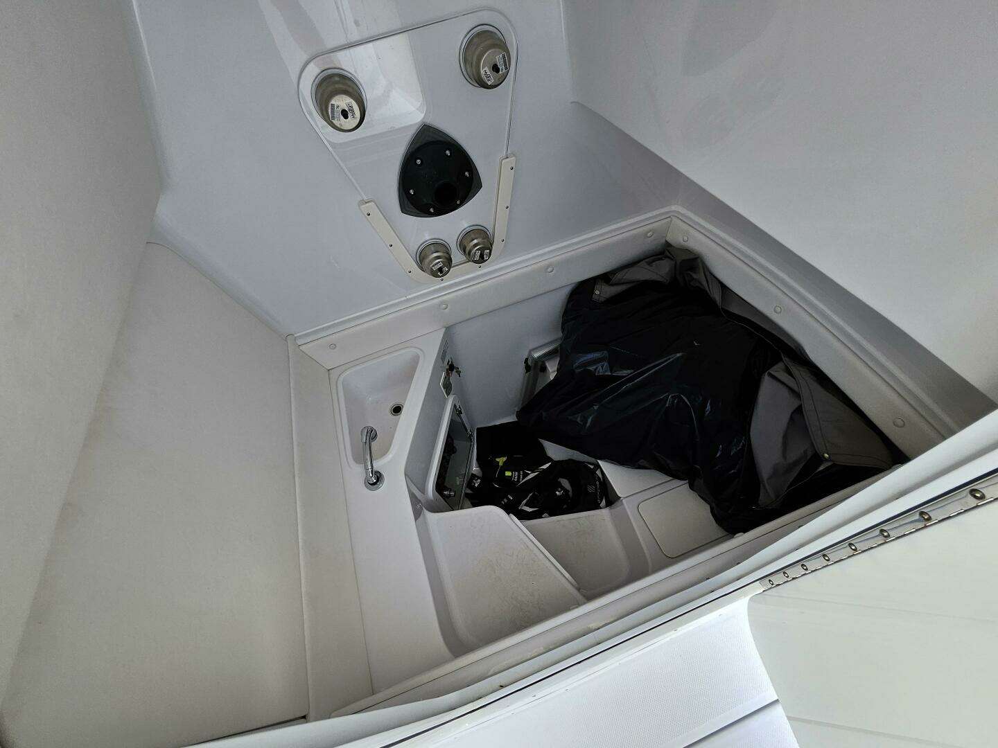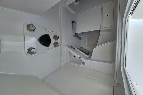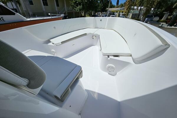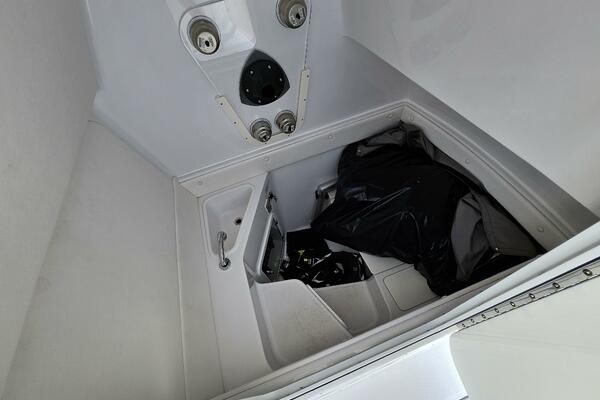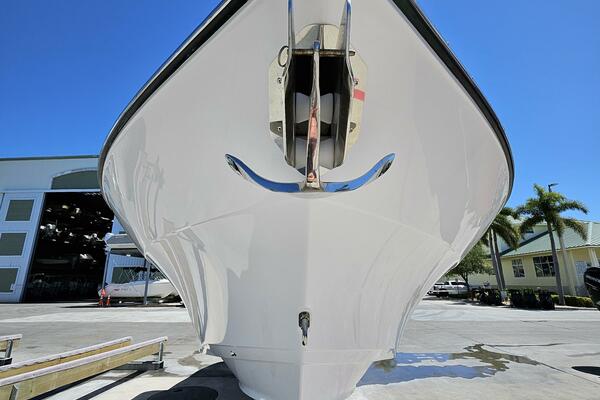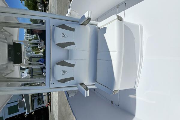 Consistent with this brand, Century includes a host of luxury features as part of their (standard included) equipment package. For example, a stainless anchor with 15-feet of chain and 285-feet of rode along with an anchor windlass system terminating into a polished thru-hull anchor roller chute are standard equipment. In the bow seating area- full bolster and cushion sets and a removable dining table are also included to complete the forward-facing seats with removable backrests.