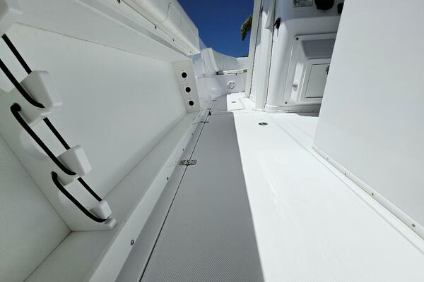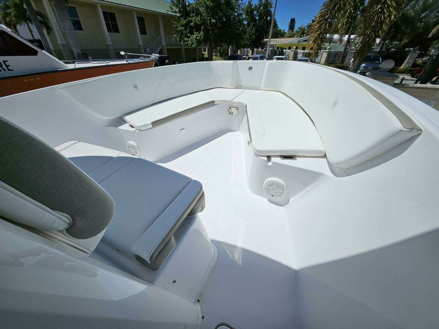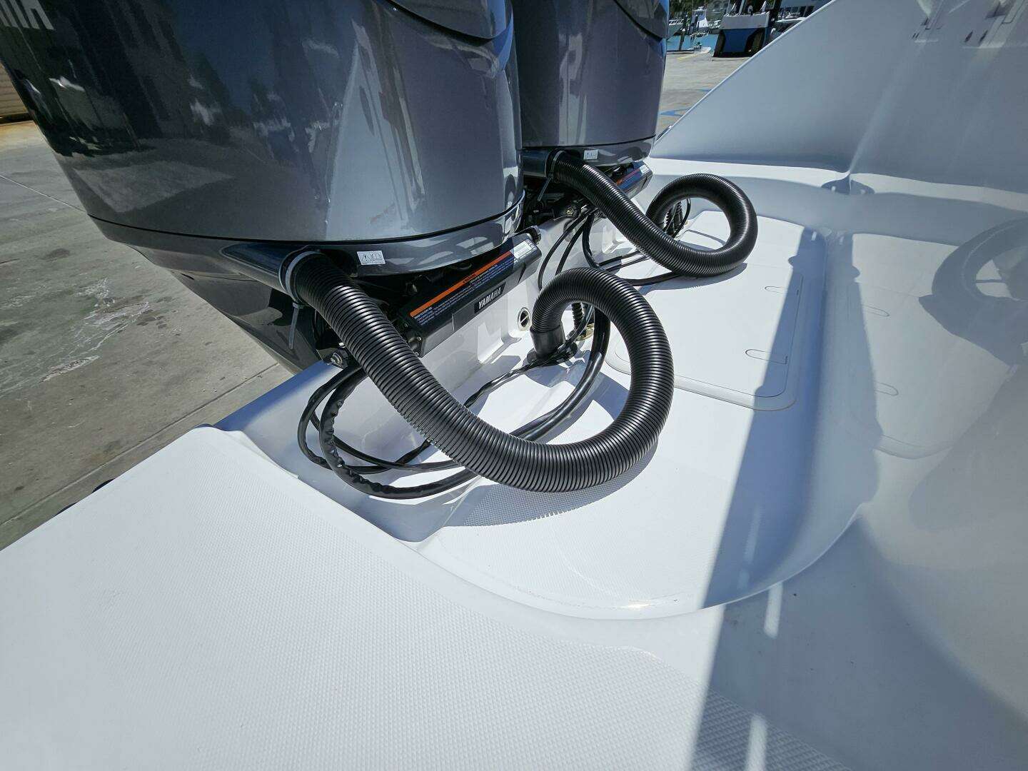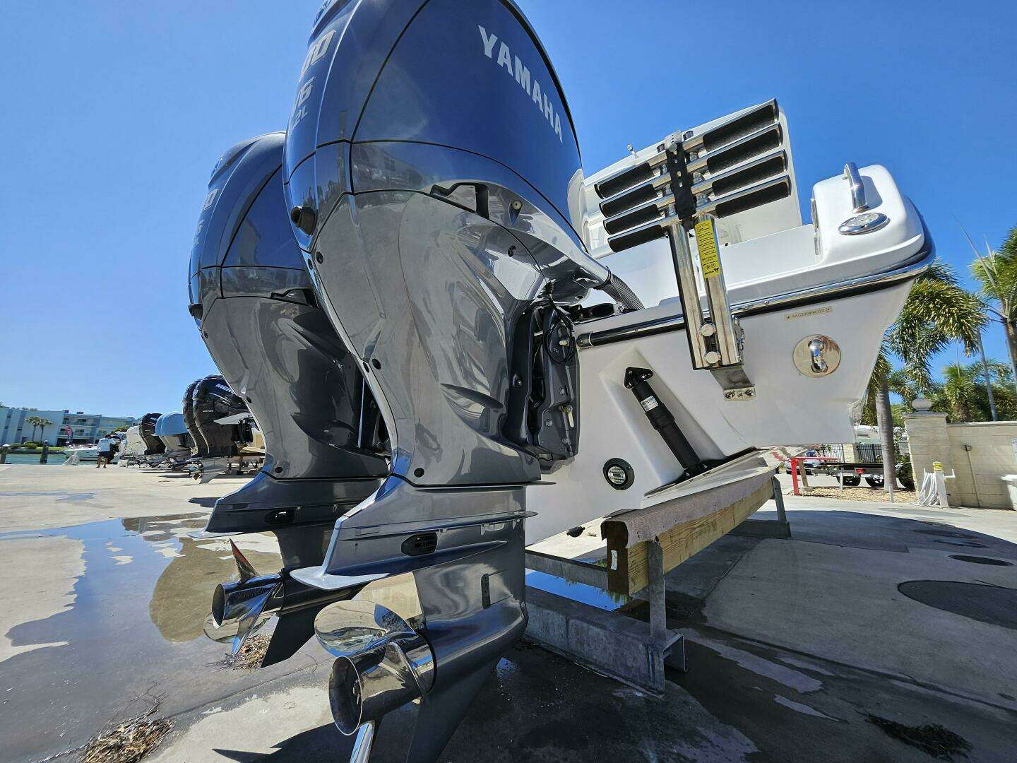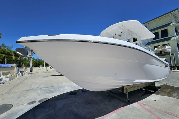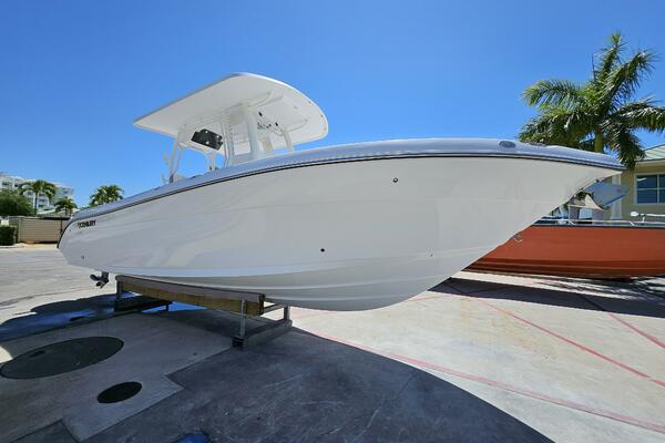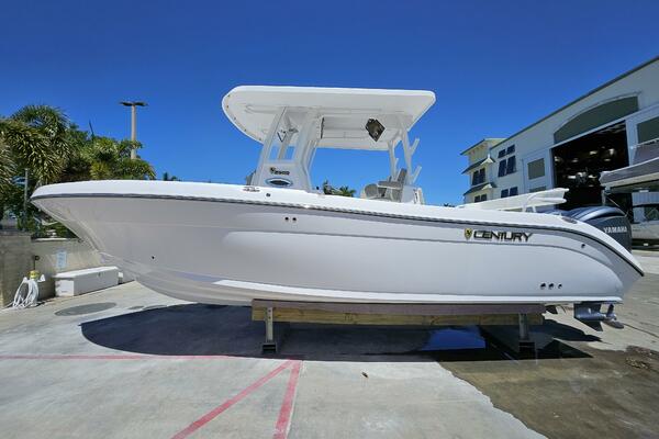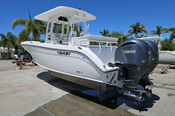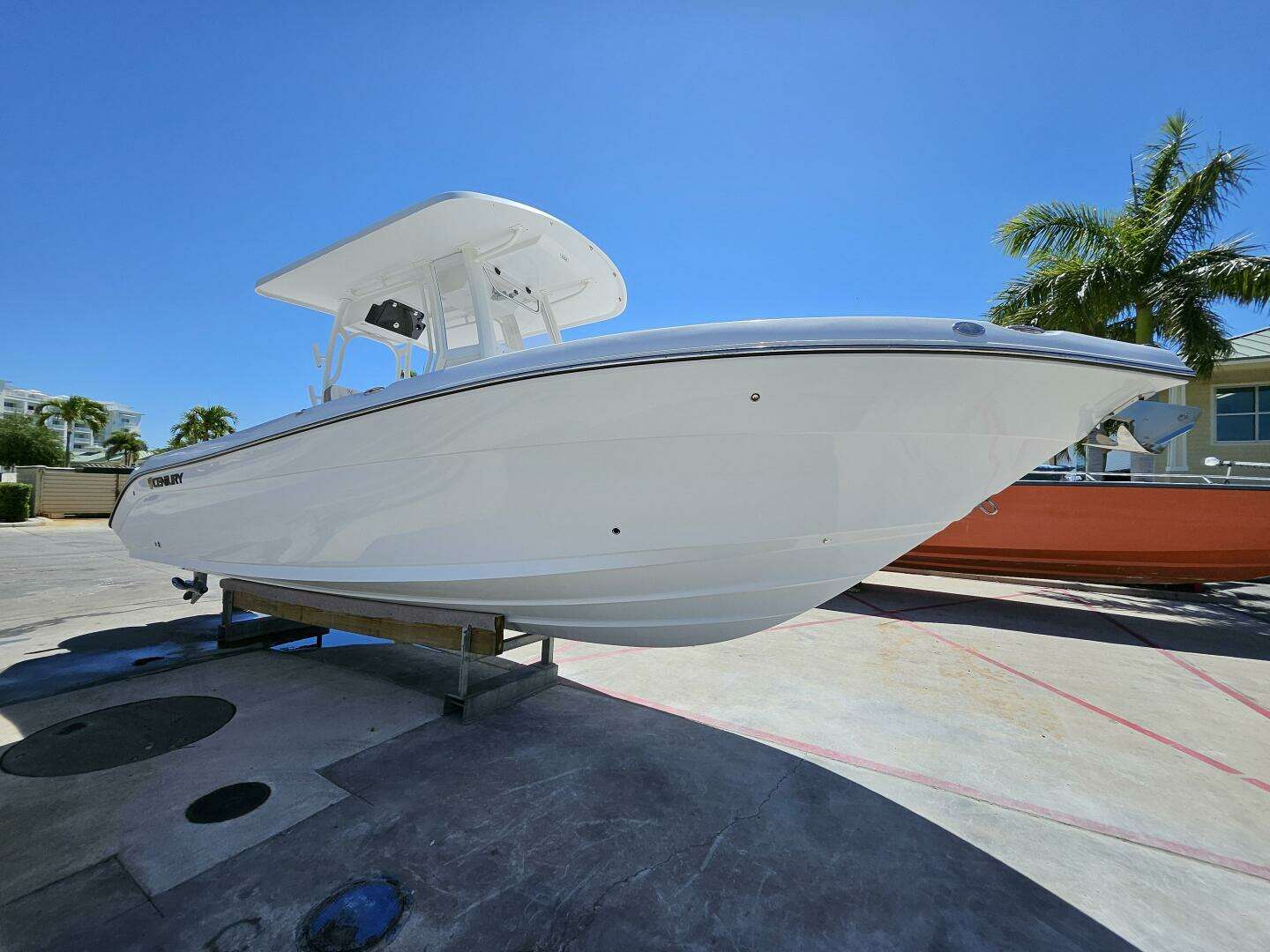 2022 Century 2900 Center Console, a remarkable vessel that combines performance and comfort in a sleek design. With an overall length of 29.3 feet, this boat features a robust fiberglass hull with a Deep Vee shape, ensuring a smooth ride even in choppy waters. Powered by twin Yamaha F300XCB outboard engines, each delivering 300 horsepower, it offers exhilarating speed and agility, perfect for both leisurely cruising and adventurous outings.