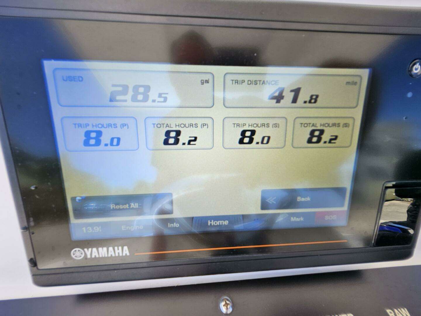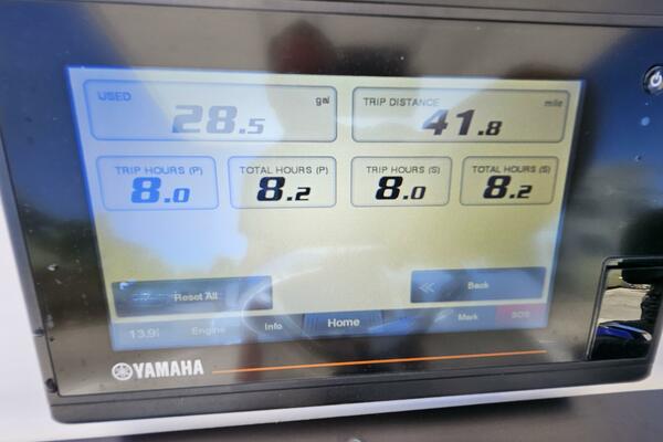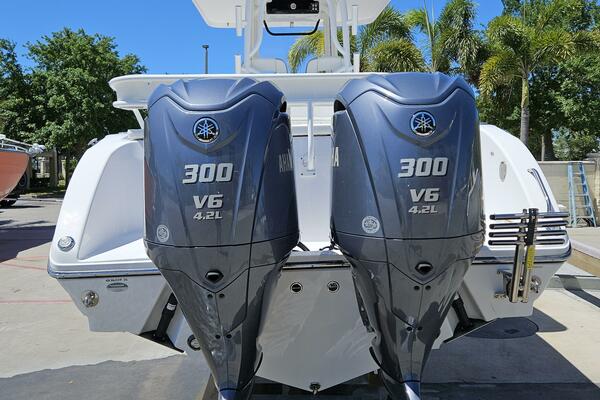 Hardly ever used! 2900 CC twin T/F300XCB motors with only 8 hours on them. Life event forces sale. Helm Master EX AUTOPILOT upgrade Upholstery is Sterling Milk base with Mustang Winter Accent Rear (Wrapped Backrest Seat & Cushion on Top of Livewell) Lumitec LED SeaBlaze X2 (2lights) White and Blue