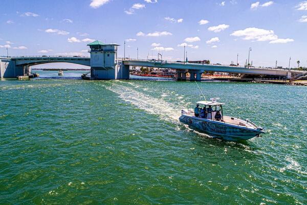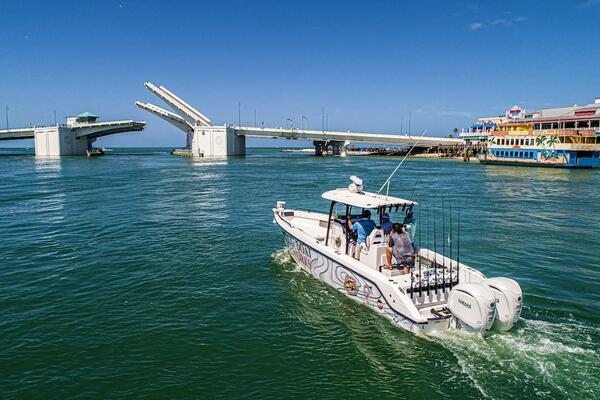 Performance is nothing short of remarkable. With a blistering top speed of 73 MPH and cruise speeds between 38–43 MPH, the CG 35 M-Series maintains incredible efficiency—achieving 2.1 MPG at 38 MPH and 1.7 MPG at 43 MPH. Travel time from Keystone Point Marina to Bimini is just 1 hour and 20 minutes, making quick getaways or tournament runs easy. It comfortably fishes 7 or more people, offering ample deck space and stability even at high speeds or in demanding offshore conditions.