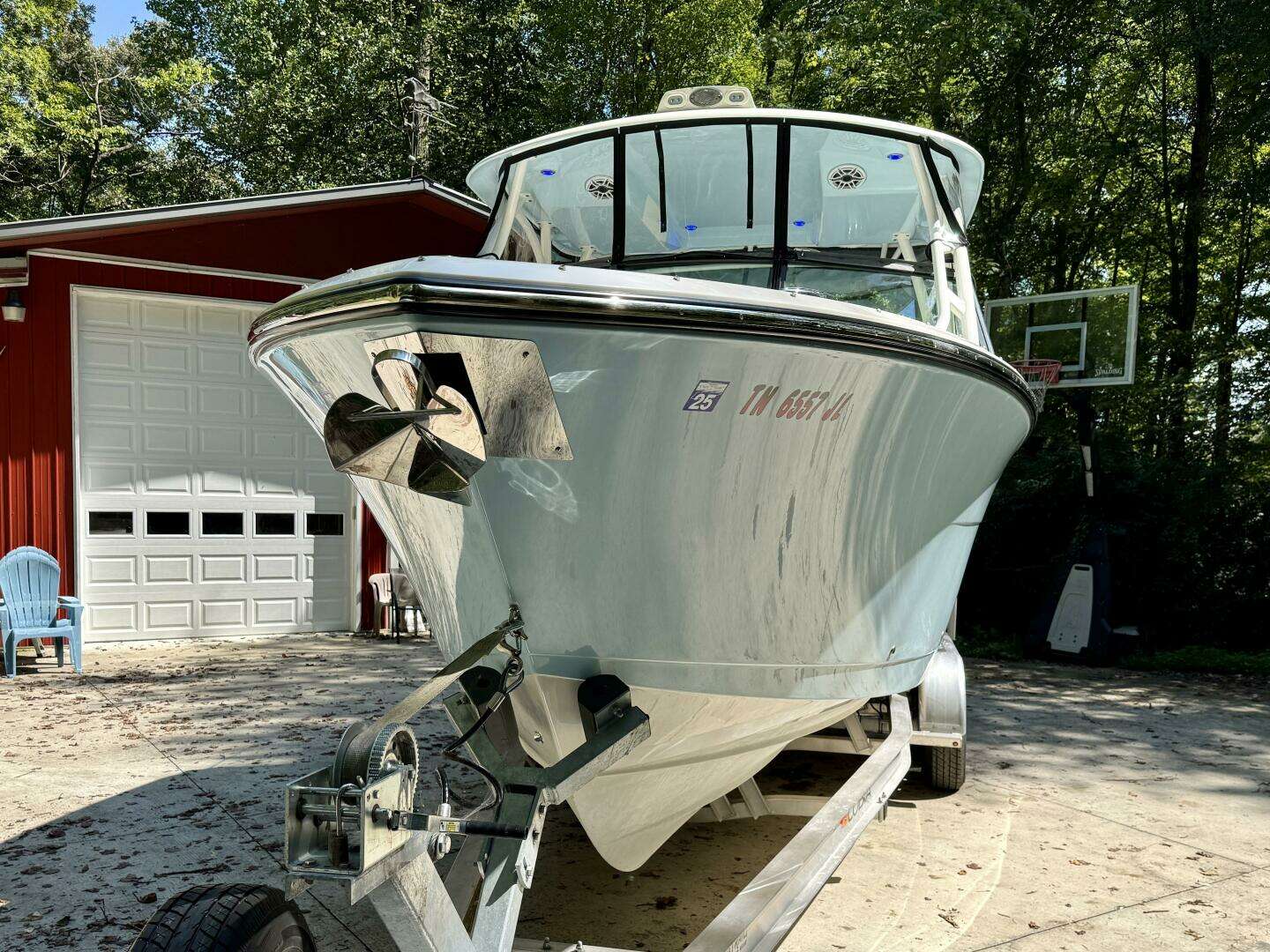 Other highlights include: self-bailing cockpit, (4)integrated fender mounts for (4)quick release fender clips, (7)heavy duty stainless steel cleats, a ski-tow pylon, bow snap-on canvas cover, a 2022 AmeraTrail aluminum tandem axle trailer with spare tire, electric over hydraulic brakes, & guide-posts!