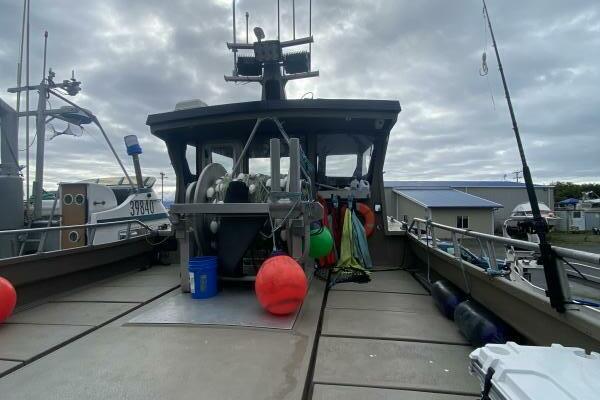 Enjoy a spacious galley, full head with shower, washer/dryer, and sleeping accommodations for 8, making it perfect for extended trips or charters. The boat packs up to 20,000 lbs in insulated holds, and advanced navigation with Time Zero keeps you on course in any condition.