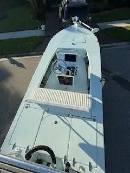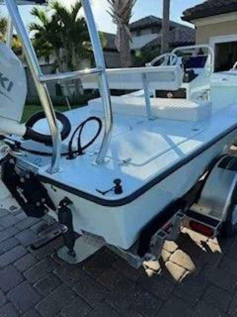 This EVO series offers unmatched versatility, performance, and reliability. Whether you’re navigating through shallow flats or braving rougher waters, these skiffs deliver exceptional performance and comfort. This vessel has the upgraded 90 hp Suzuki engine, neutral color (white), extended / transf