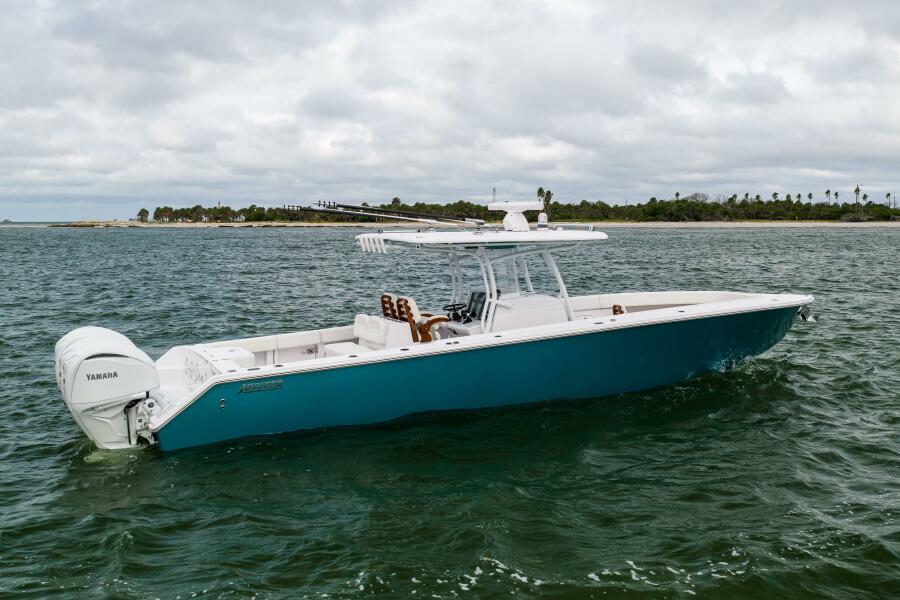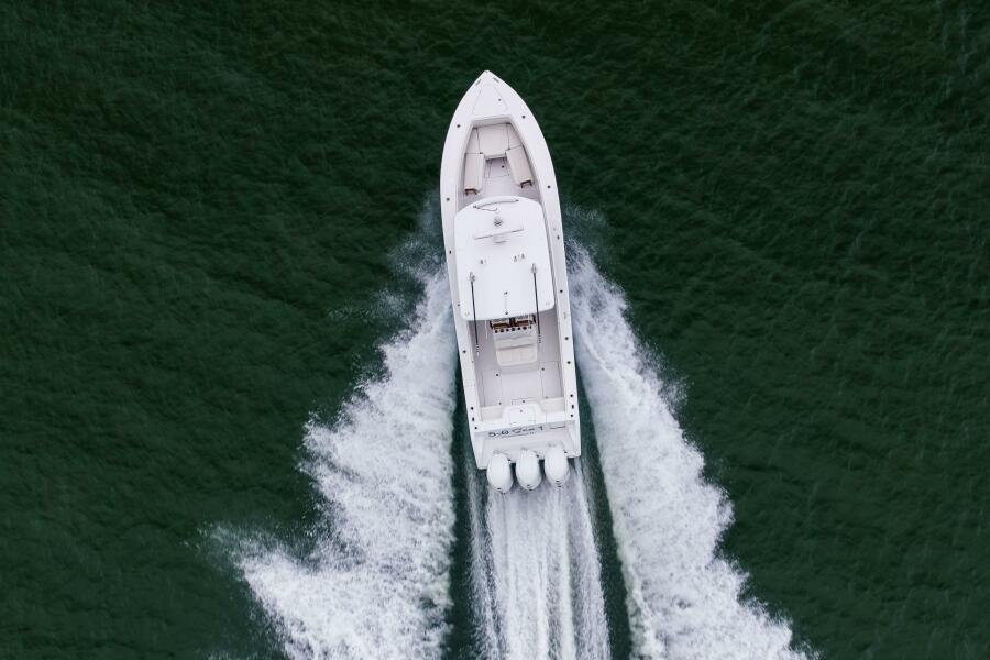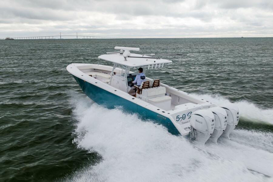 Like NEW Condition 2022 Jupiter 38 HFS powered by triple Yamaha 300's and equipped with a full Garmin Electronic Package, Bow Thruster , Night Vision and Release Marine seating this 38 Jupiter turns heads on the water !