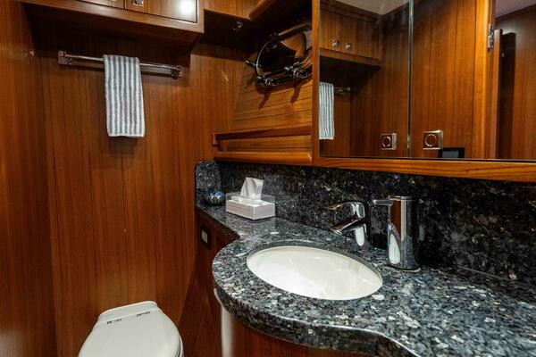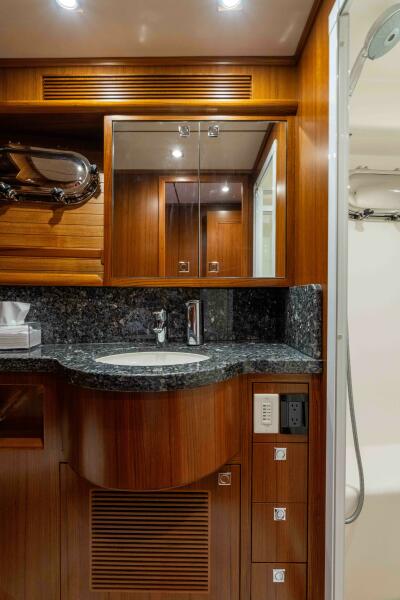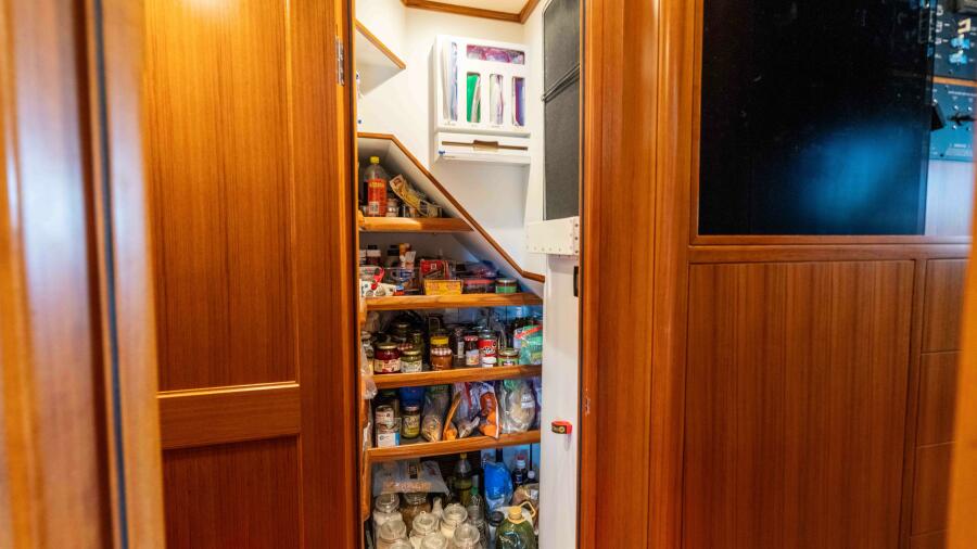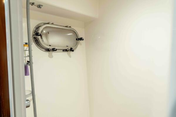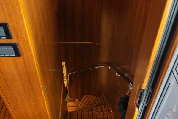 Accessed in the deck of the VIP stateroom, there is a ball mounted on the hatch lock to ensure nothing catches it when going in or out.