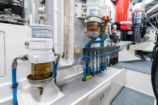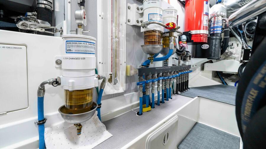 - Racor filters for both generators and both engines as well as additional Racor filters to run fuel through from the 4 main tanks to the day tank and wing engine tanks to ensure fuel used in all the machinery clean