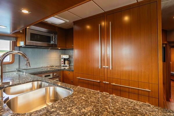 - Dual stainless-steel sinks with granite covers for extra counter top space