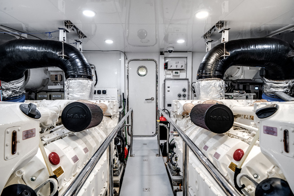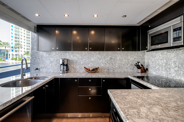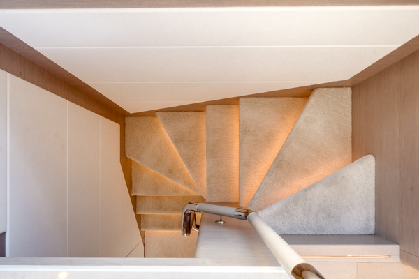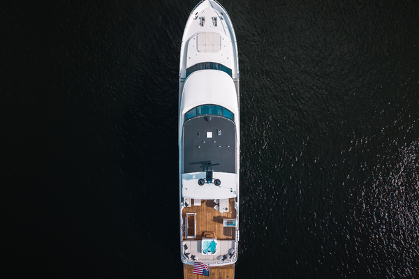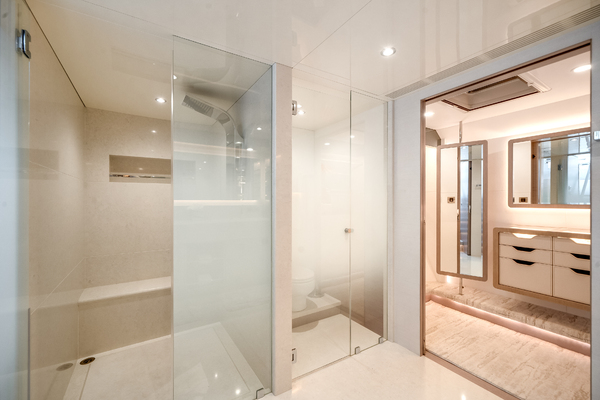 Carbon Copy includes a spacious on-deck master suite, offering the owner a private oasis of comfort and serenity. Thanks to our pioneering aluminum-beam engineering, we’ve achieved some of the most impressive, unobstructed window views available in a yacht of this size.