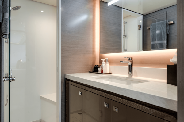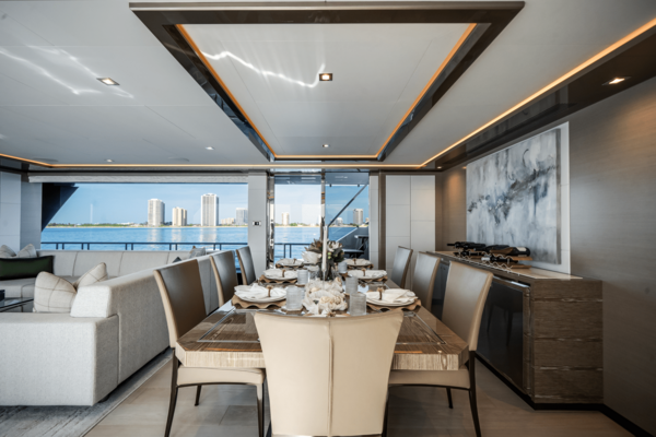Introducing the Ocean Alexander 30R, a groundbreaking vessel that pushes the boundaries of luxury and performance. Meticulously designed by Evan Marshall and his team, this yacht presents a perfect fusion of innovation and elegance, redefining what a boat can be. Unleashing a powerful engine, the 30R ensures swift and effortless navigation on the open waters, while maintaining the highest standards of safety. Every detail has been carefully crafted to enhance your yachting experience, from the expansive living spaces to the awe-inspiring panoramic views. Step aboard and be captivated by the sleek and modern design that commands attention at any marina. The full-width main deck provides an abundance of space for relaxation and entertainment, effortlessly blending indoor and outdoor living. Enjoy a refreshing cocktail at the wet-bar island in the salon, mesmerized by the breathtaking sunset pouring through the floor-to-ceiling windows. Delight in the spacious on-deck master suite, allowing you to savor every moment of tranquility and privacy. And when you desire a connection with the sea, escape to the newly designed beach house where you can revel in the beauty of the stars against the endless backdrop of the ocean. The Ocean Alexander 30R is not just a boat, but a testament to the art of luxury cruising. Prepare to be captivated as you embark on an unforgettable journey on this extraordinary yacht.