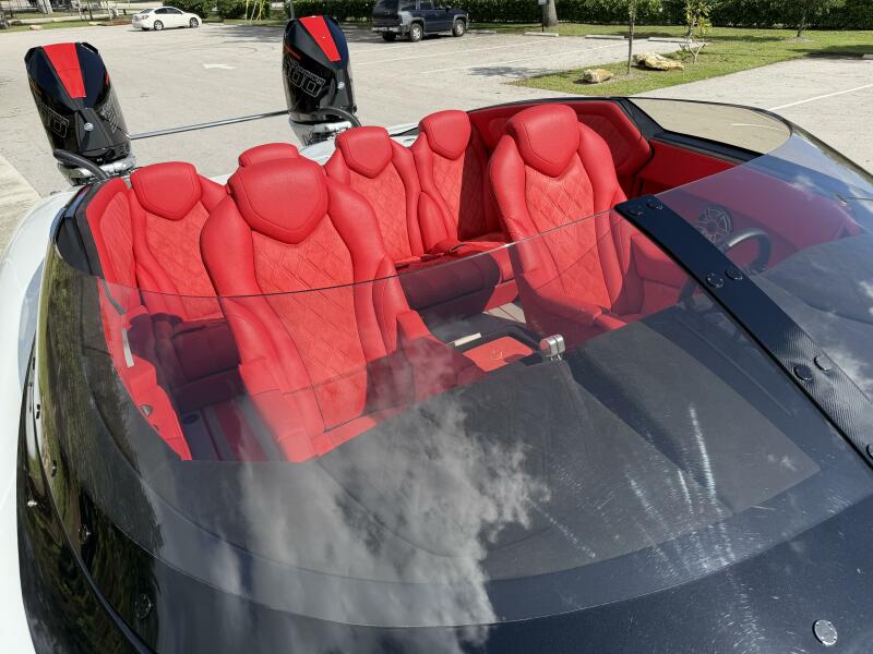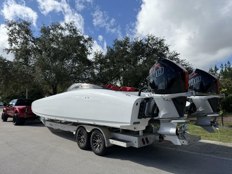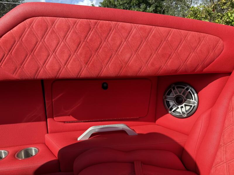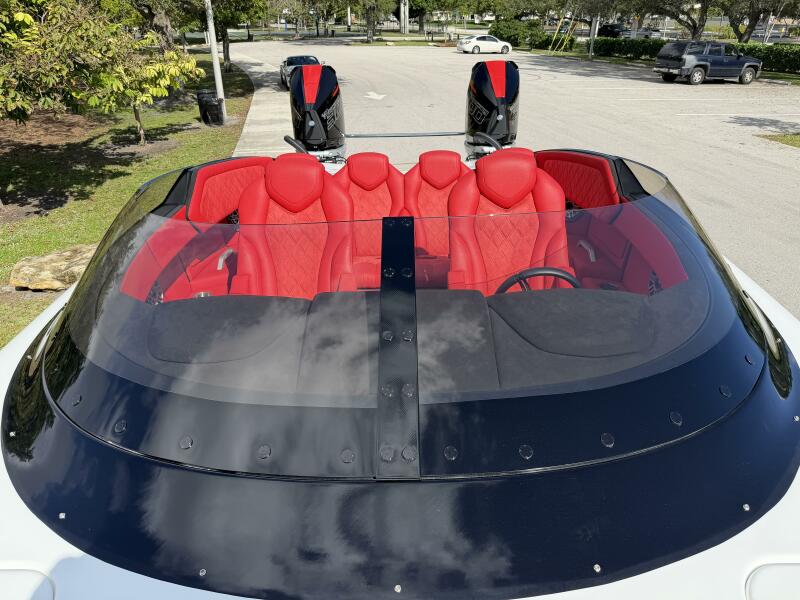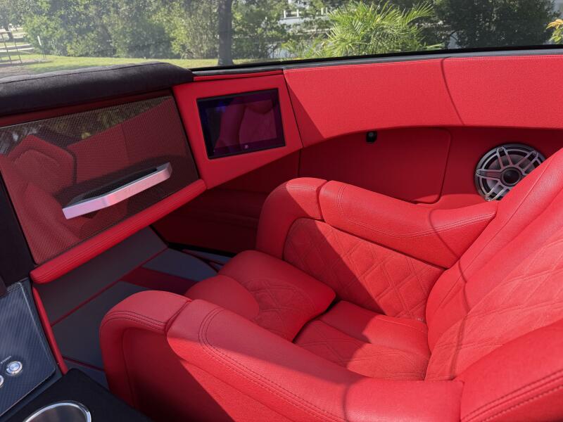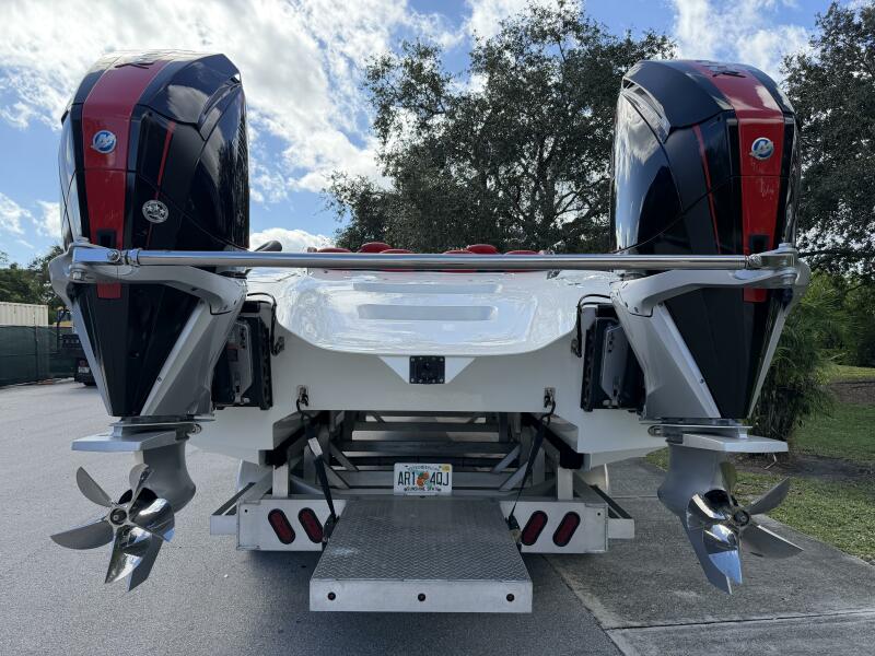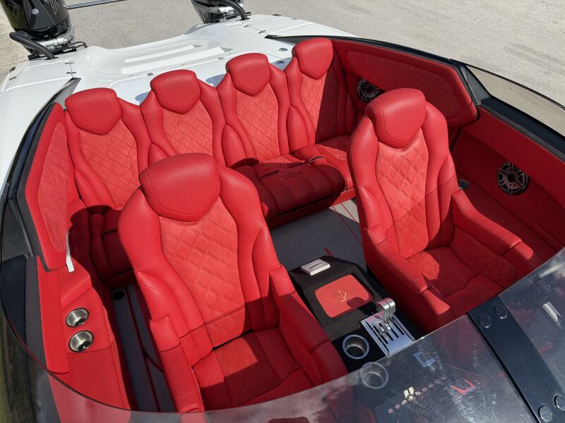 2022 Wright Performance 320, with the new Mercury Racing 300R AMS engines with 70 hours and CNC propellers. The 320 is very easy to drive and handles amazing. This boat has a slick white paint and red interior utilizing Ultra Leather and Alcantara. 17" Garmin GPS, Dual Vessel View 903s, Stereo w/ 4 7.7s and one 10" sub, on board charger.
